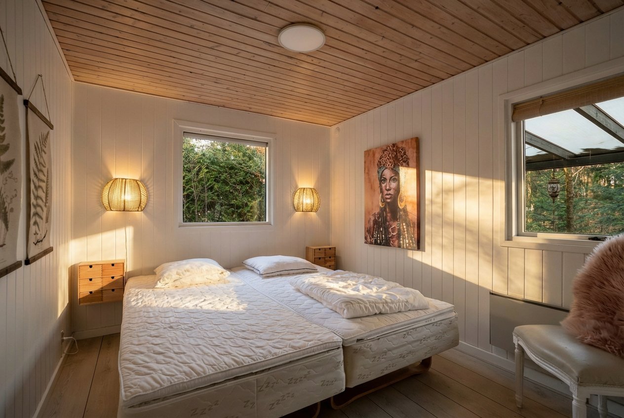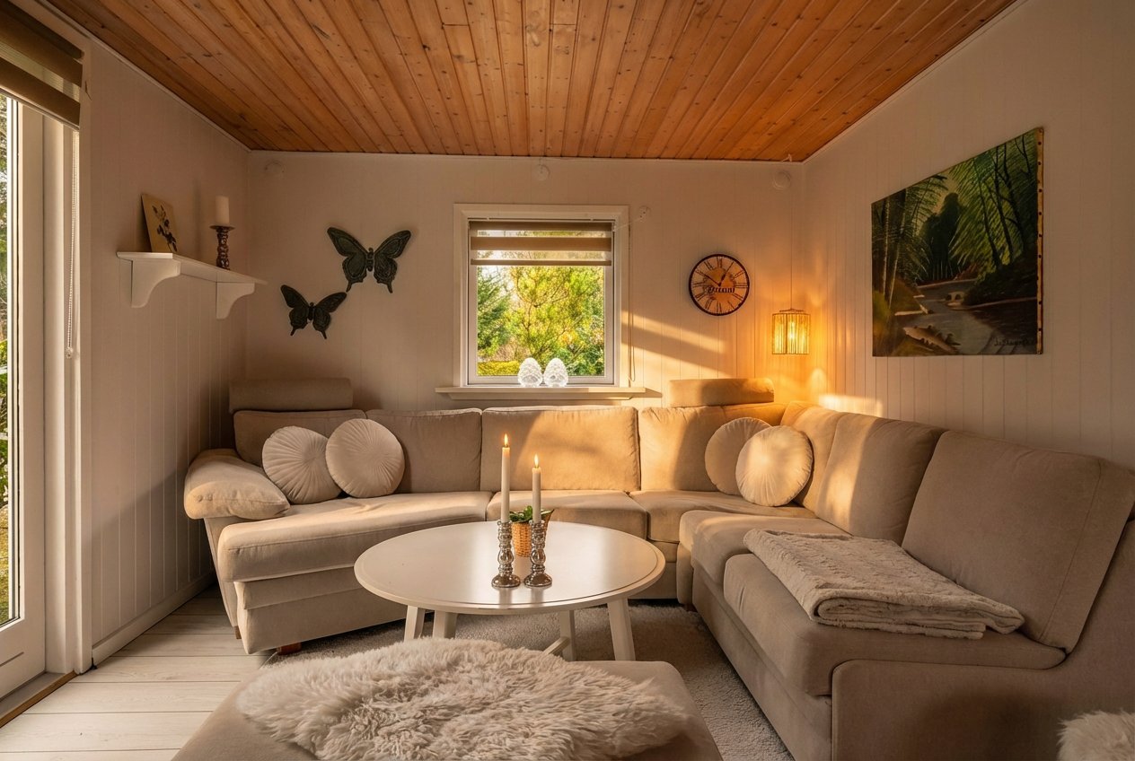 Her får du et hyggeligt og stilfuldt indrettet sommerhus på 70 m², perfekt fordelt med 3 værelser og en indbydende stue, der samler familie og venner til brætspil, grin og lange middage. Indretningen er både hyggelig og varm – et sted, hvor man straks føler sig hjemme.