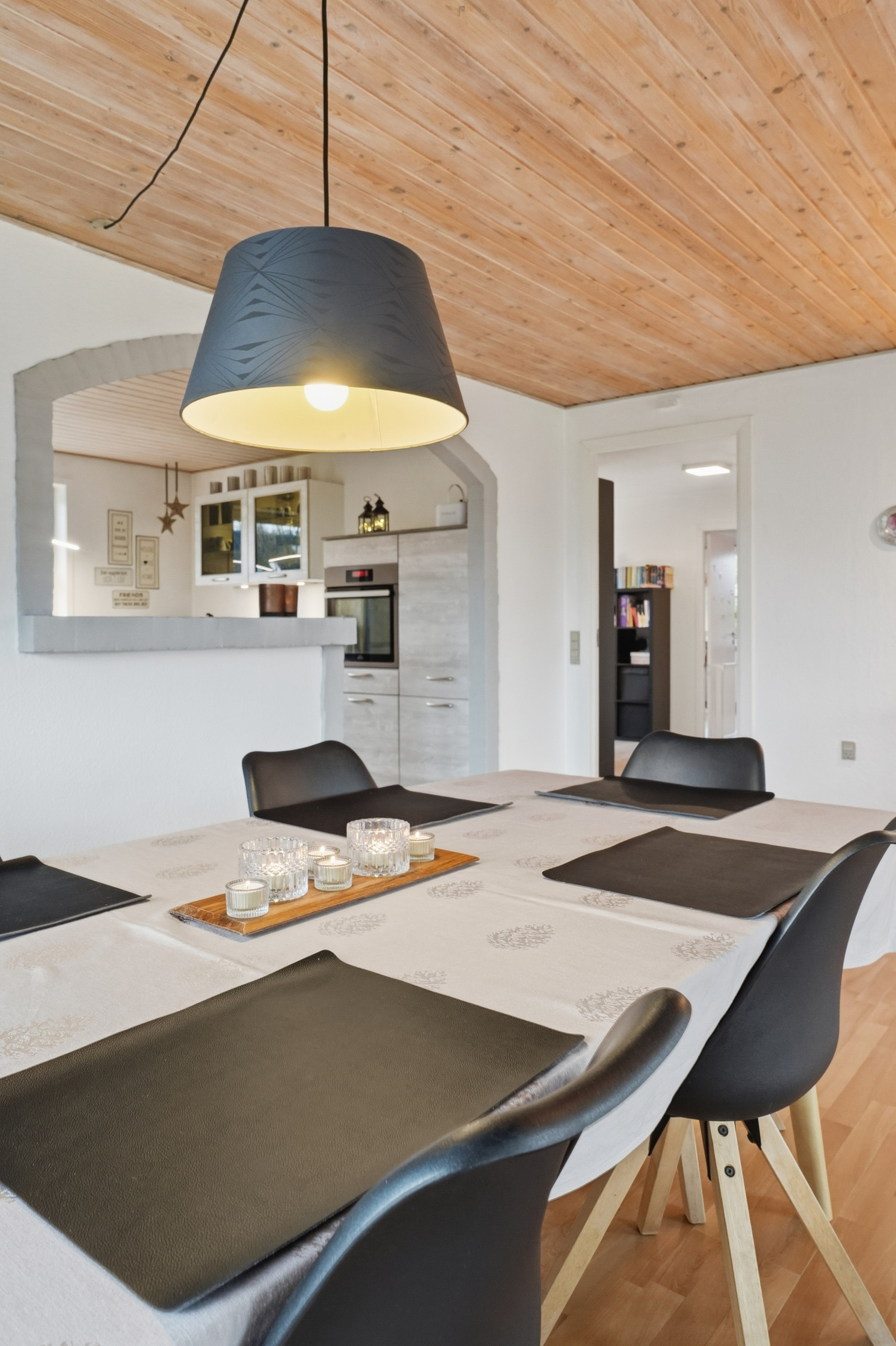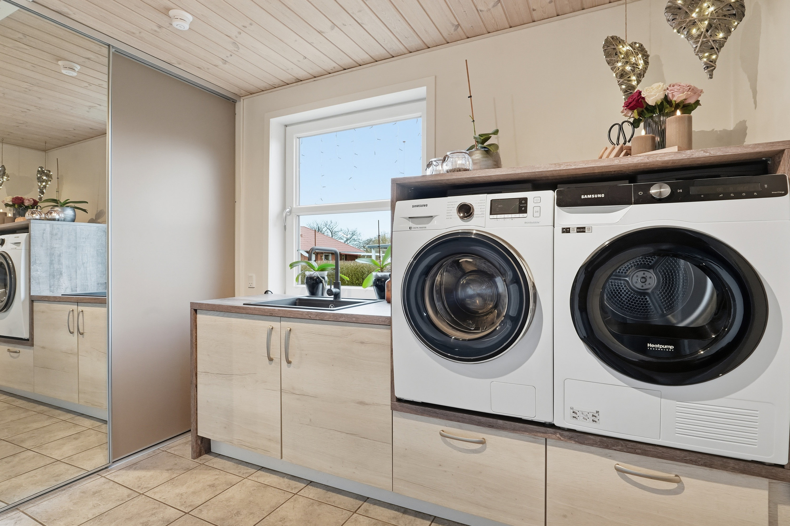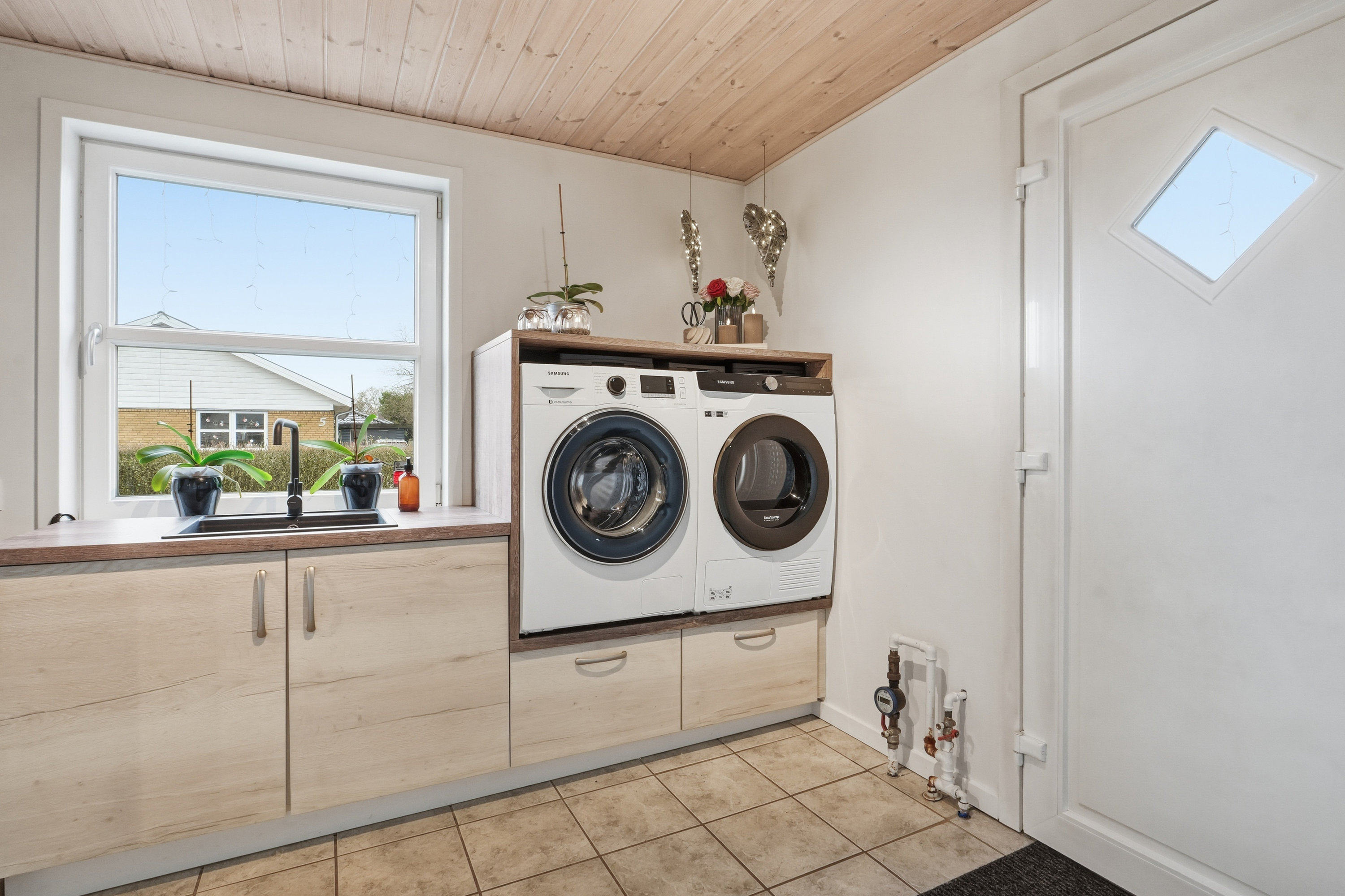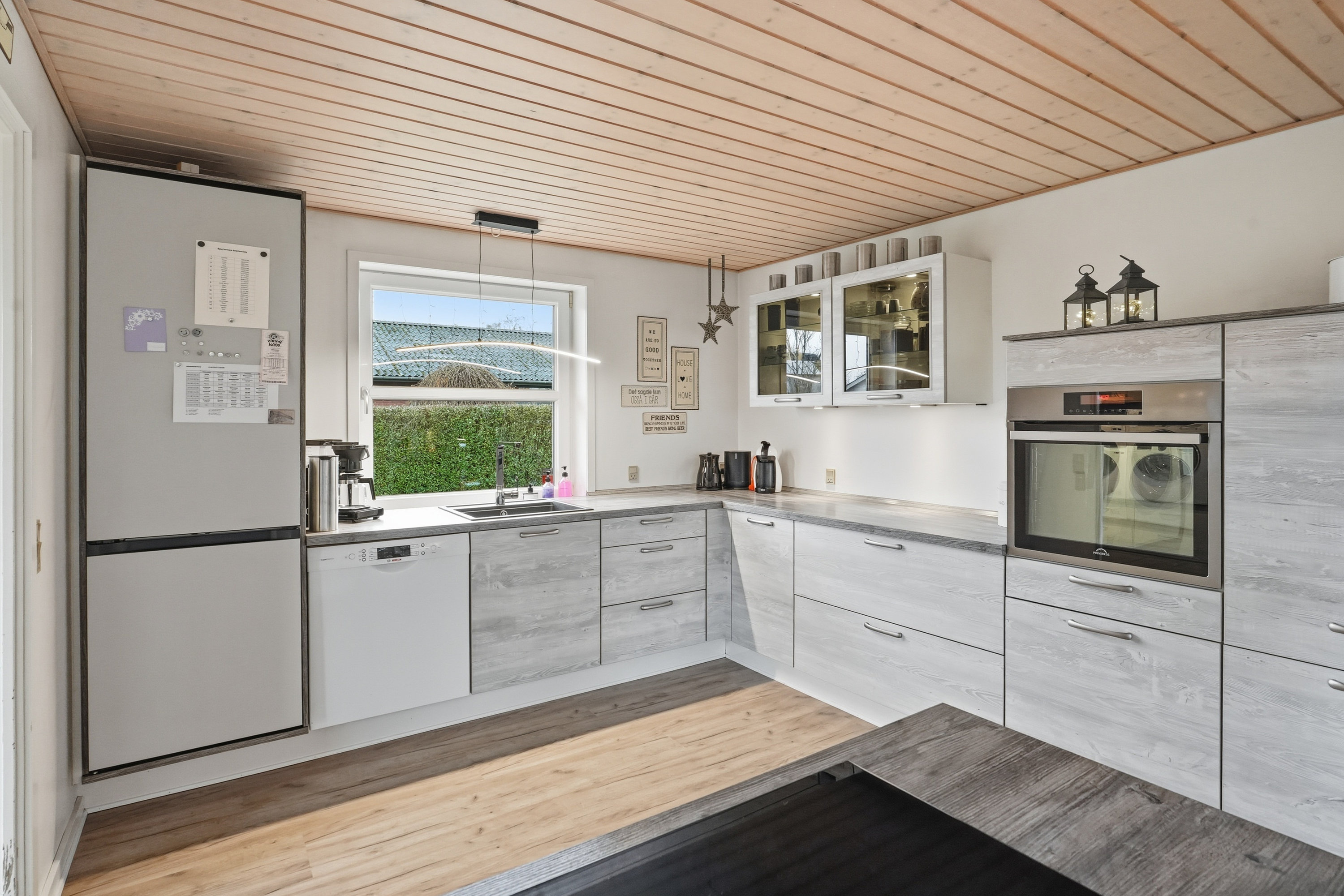 Allerede udefra fornemmer man, at huset er passet godt på. Indenfor træder du ind gennem bryggerset, hvor der er god plads til hverdagens praktiske behov. Herfra fortsætter du videre ind i køkkenet, som ligger i naturlig åben forbindelse med boligens store opholdsstue. Her får du et lyst og indbydende opholdsrum, hvor lyset strømmer ind fra flere sider og skaber en behagelig og varm atmosfære i hele rummet. Her er der rigelig plads til både spisebord og sofagruppe, og stuen fungerer som et naturligt samlingspunkt i hverdagen. Fra stuen er der desuden udgang til terrassen og haven – et oplagt sted for både afslapning og familietid i de varme måneder.