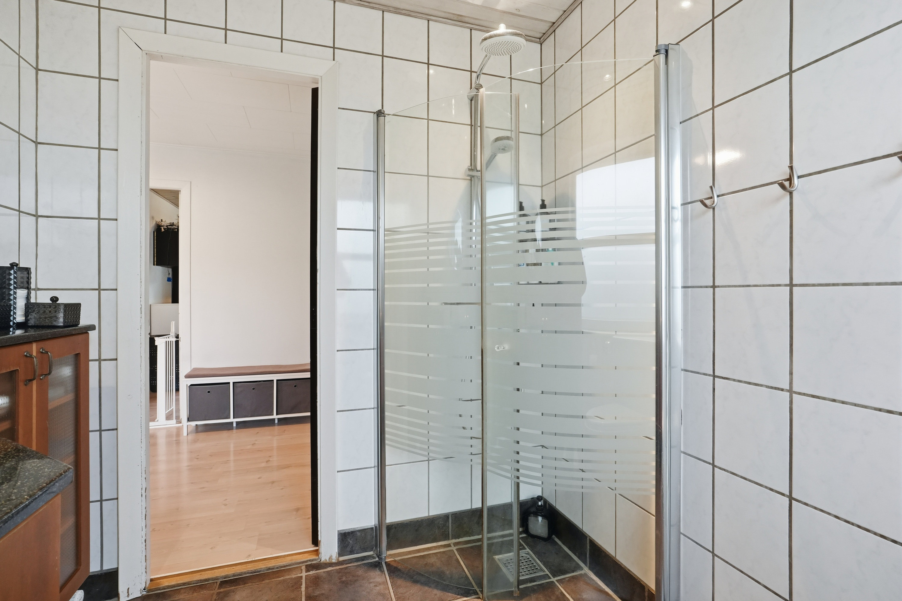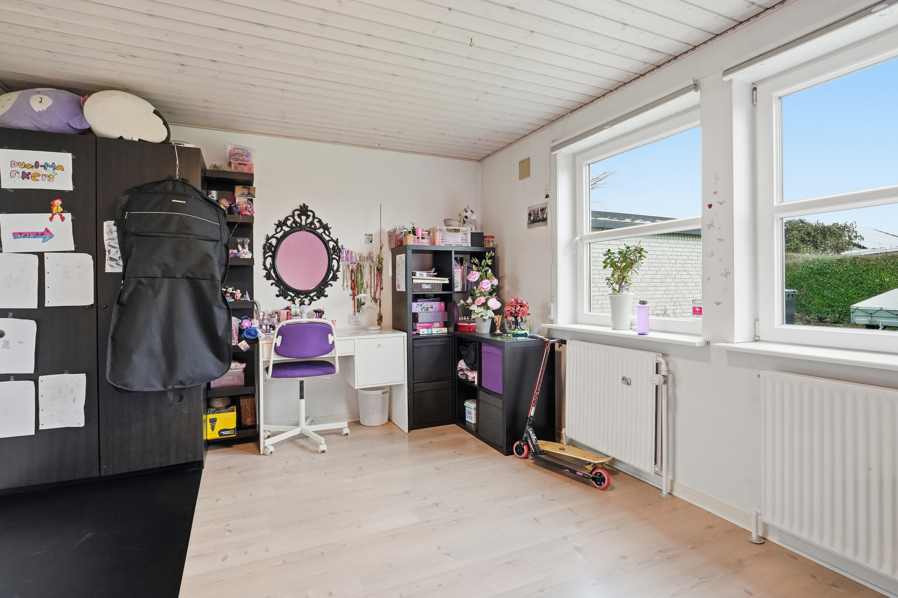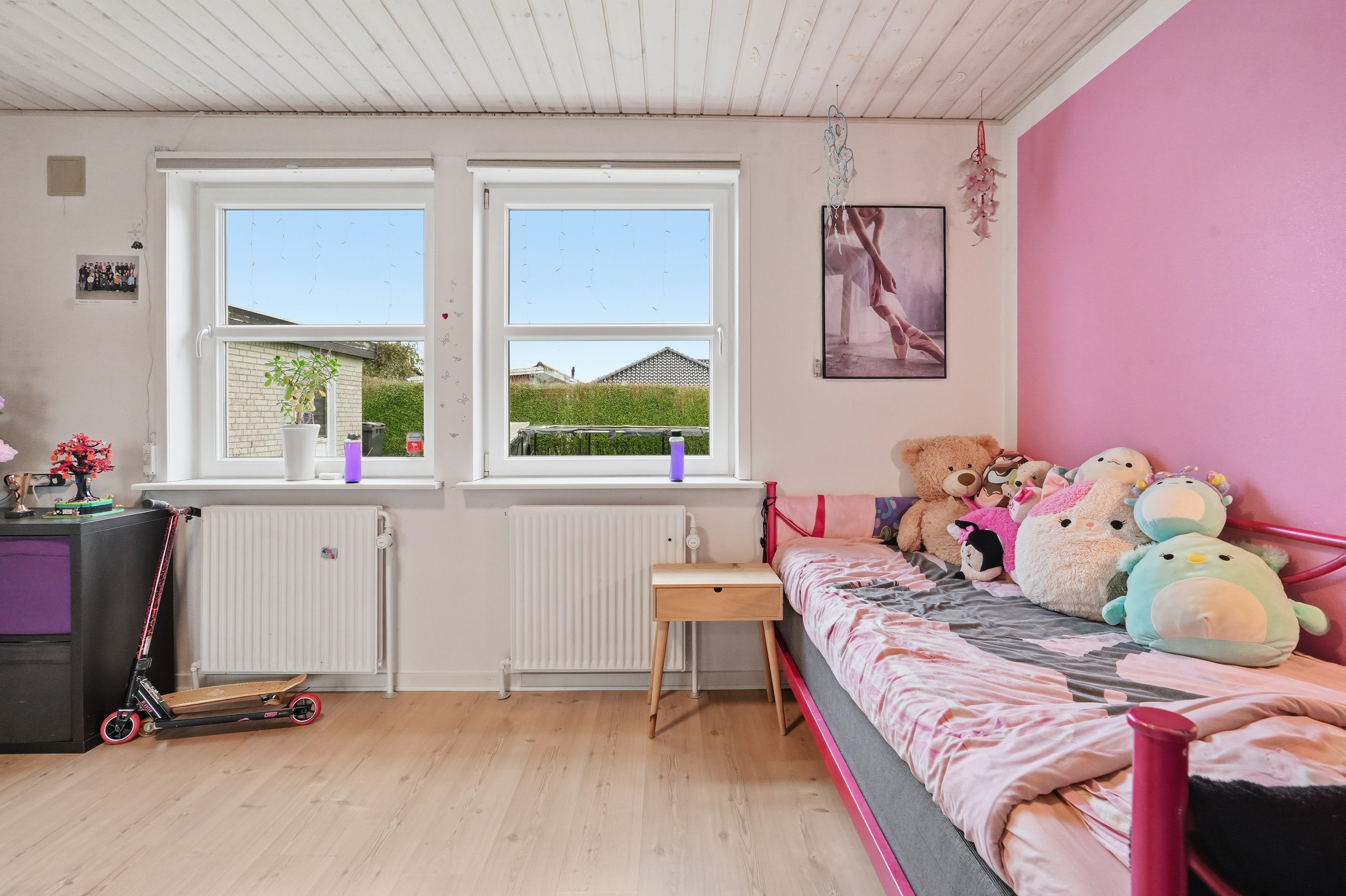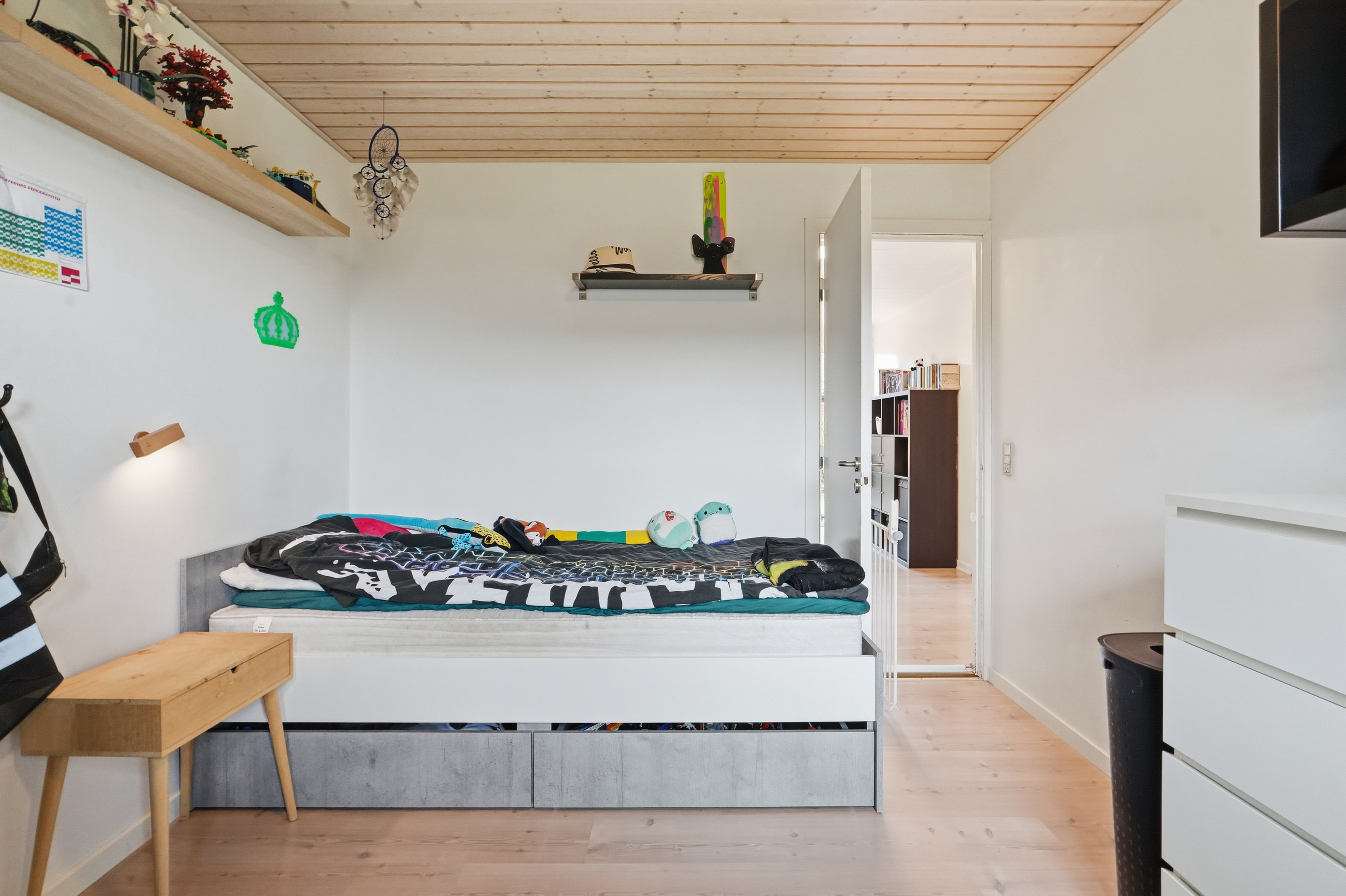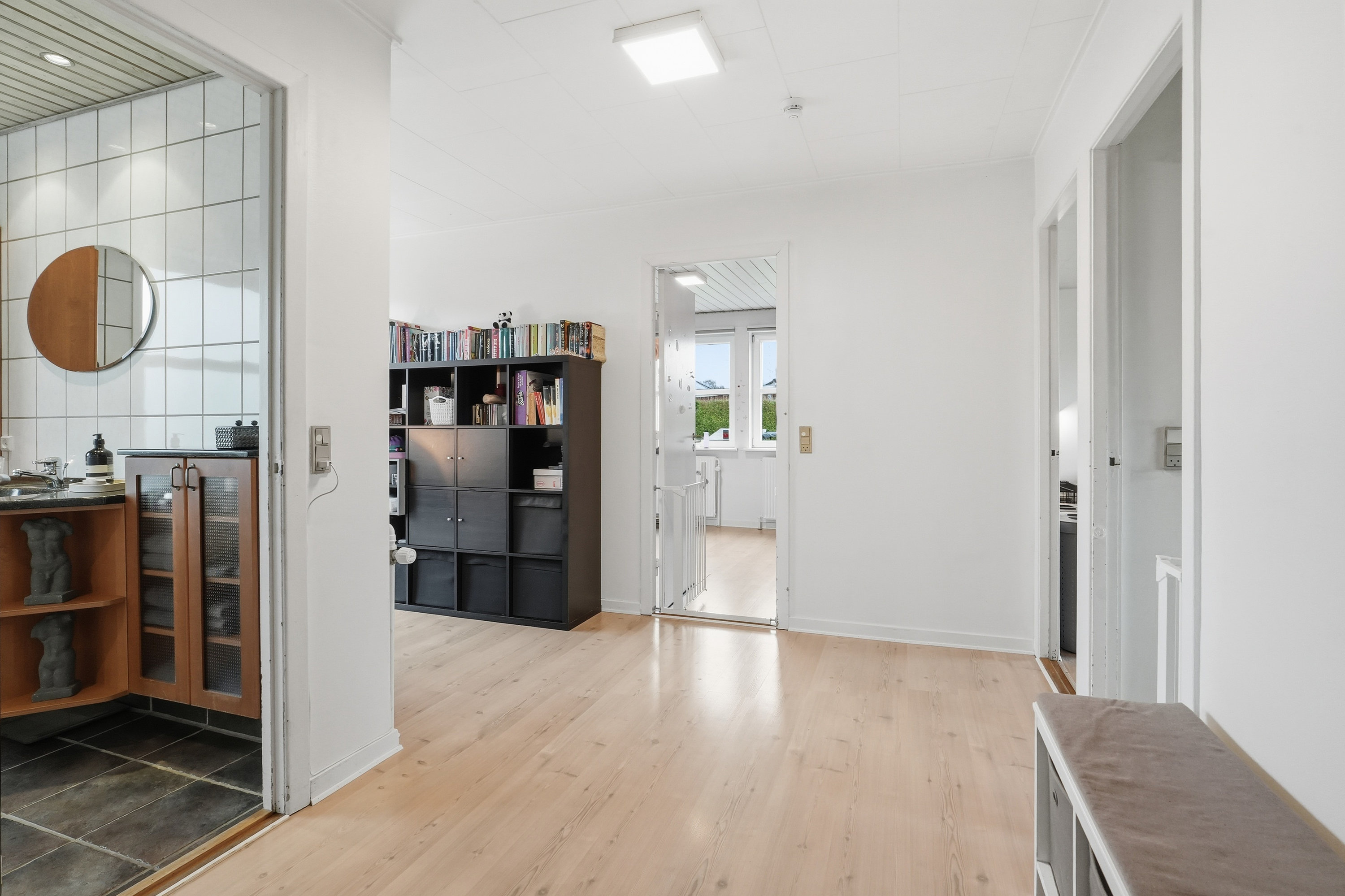 Boligen rummer tre store og særdeles anvendelige værelser med gode kvadratmeter. Værelserne ligger omkring en praktisk fordelingsgang, hvor man også finder boligens badeværelse. I samme område er den tidligere gæsteentré blevet sløjfet og indrettet som en ekstra kontorplads – en funktionel løsning, der udnytter kvadratmeterne optimalt.