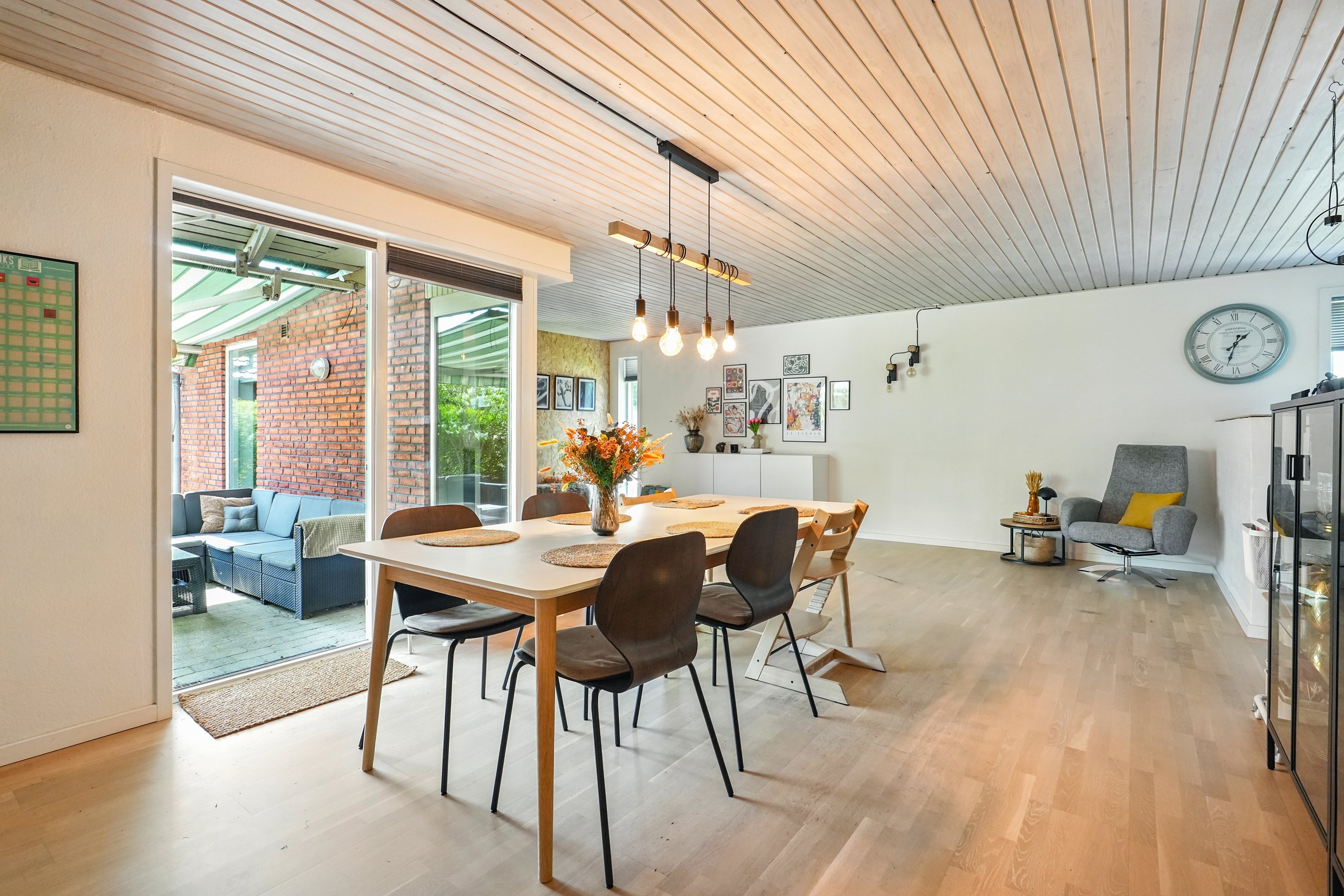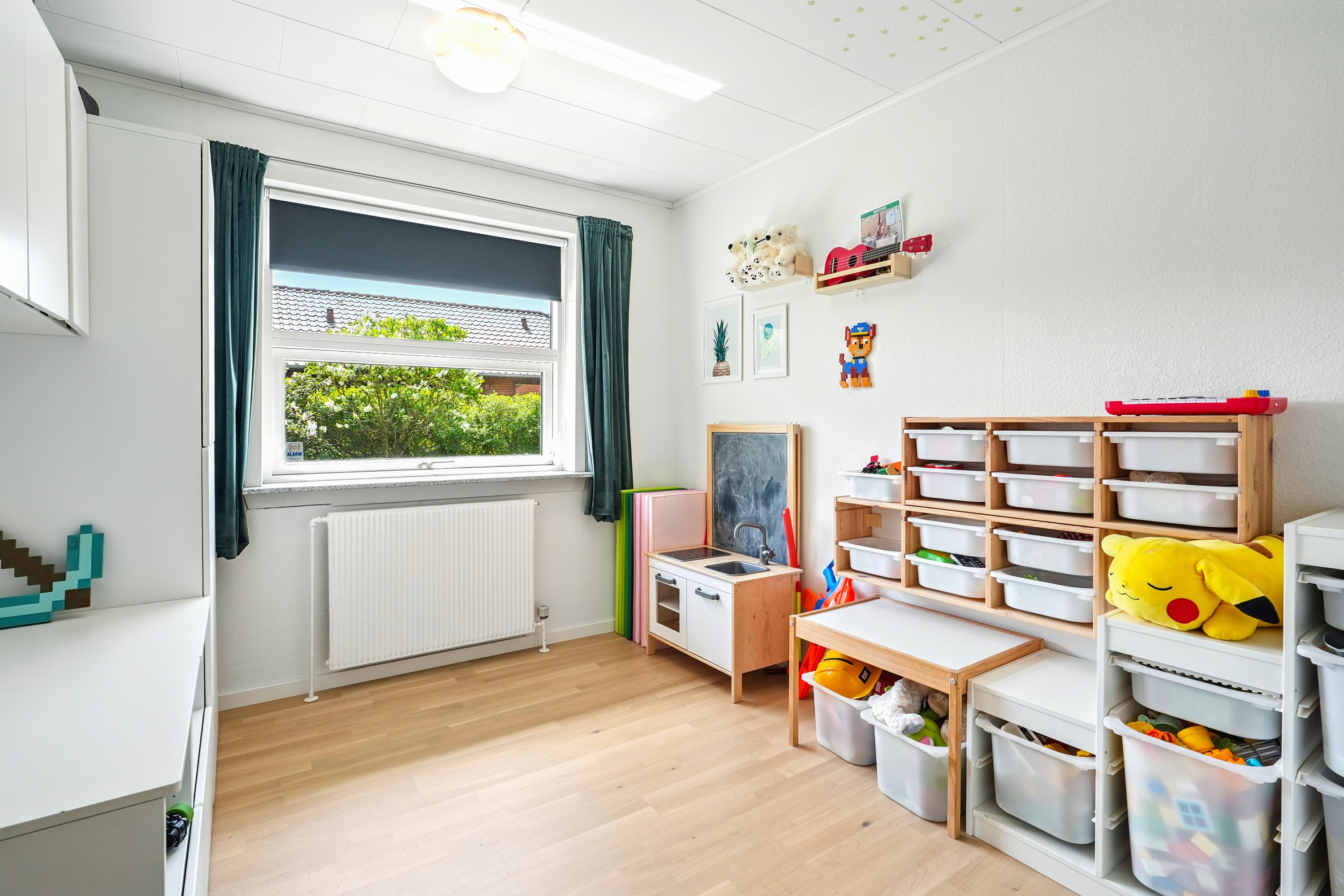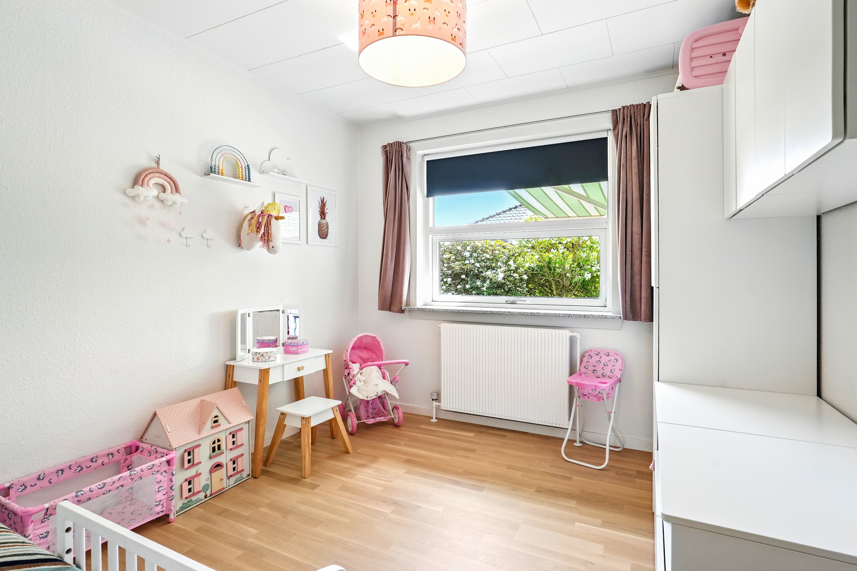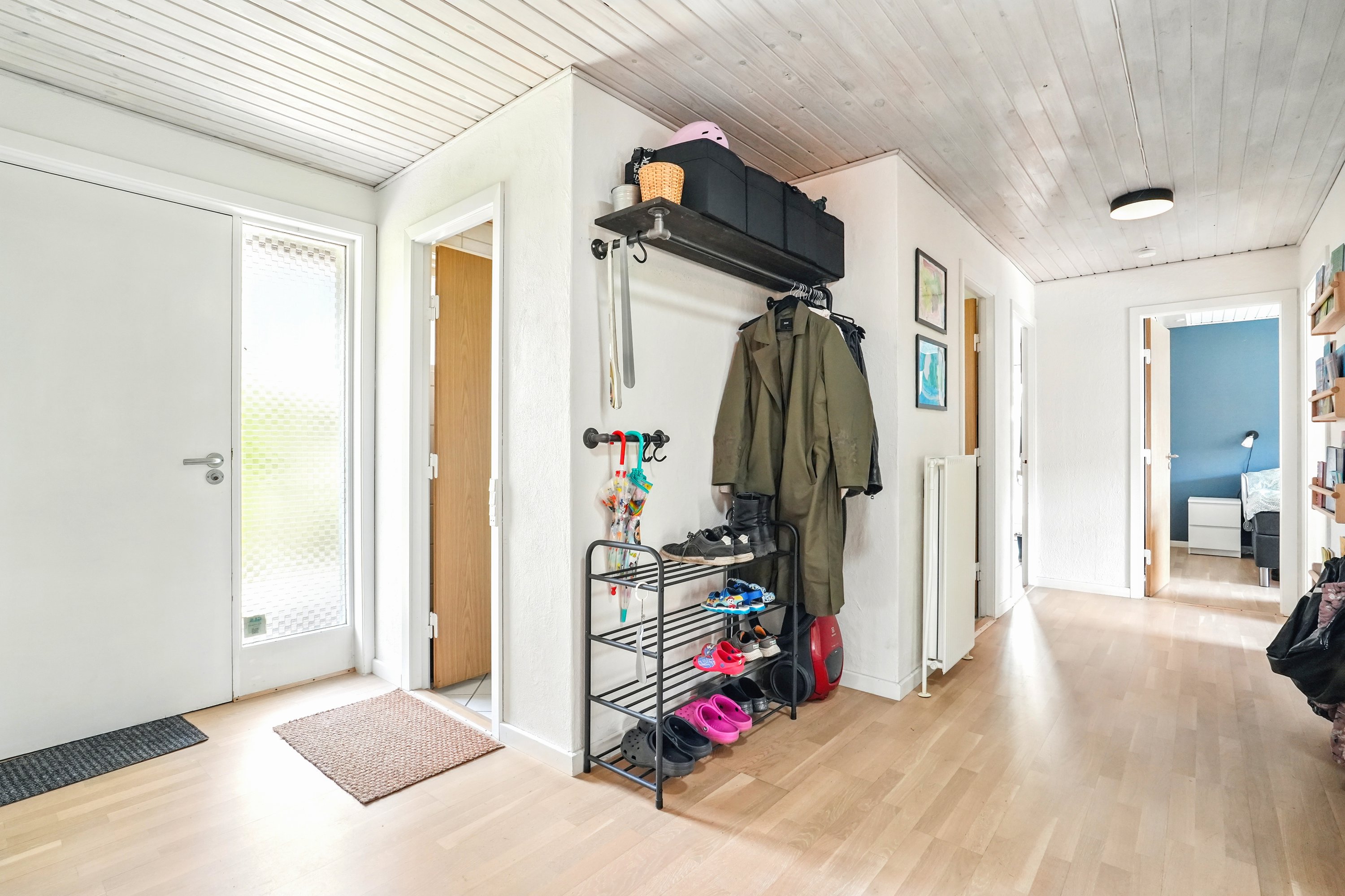 Indenfor byder boligen på en gennemtænkt planløsning med tre rummelige værelser, alle med god skabsplads, samt et lyst badeværelse med bruseniche og et ekstra gæstetoilet. Det funktionelle bryggers har både god opbevaringsplads og plads til vaskemaskine og tørretumbler.