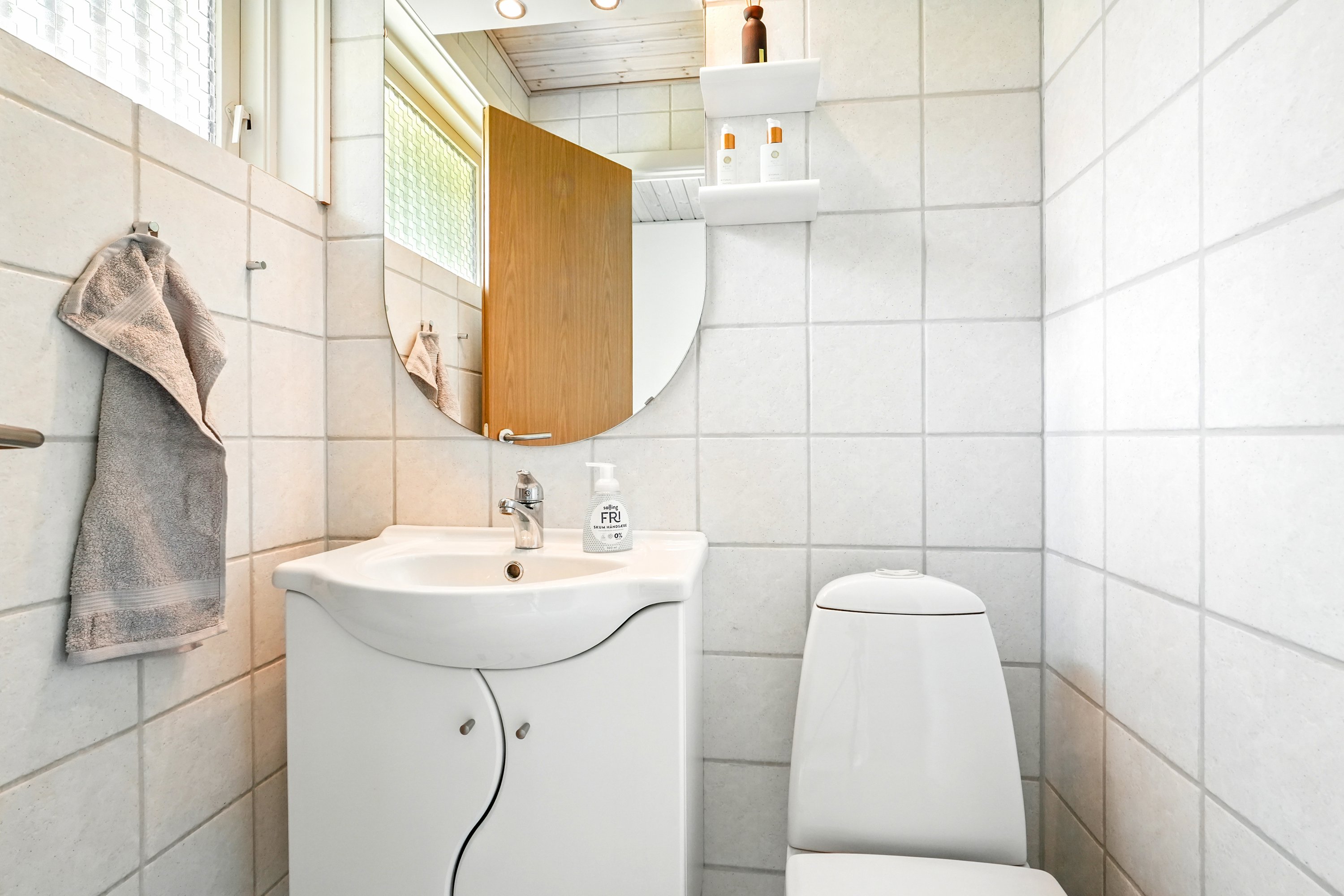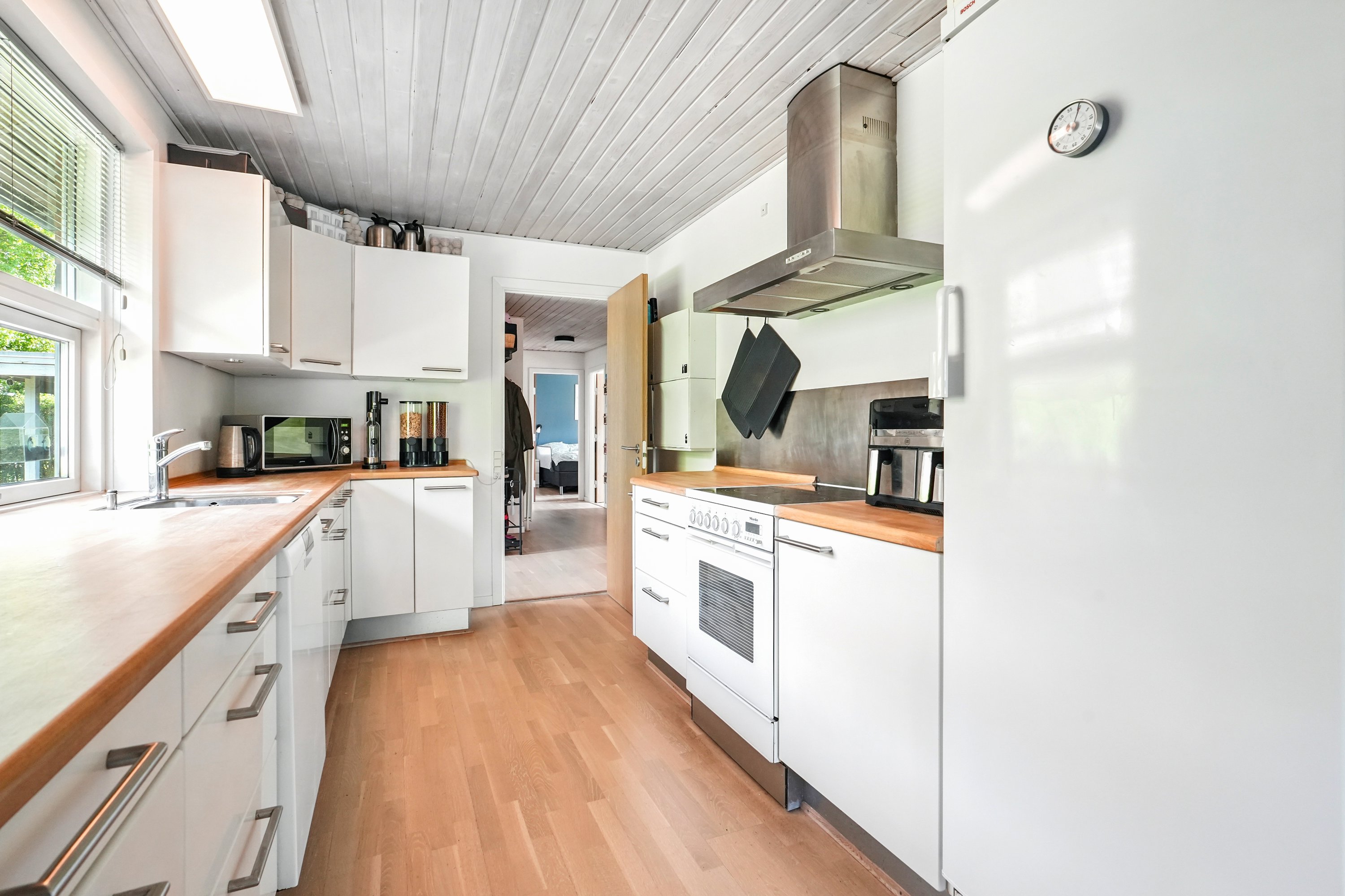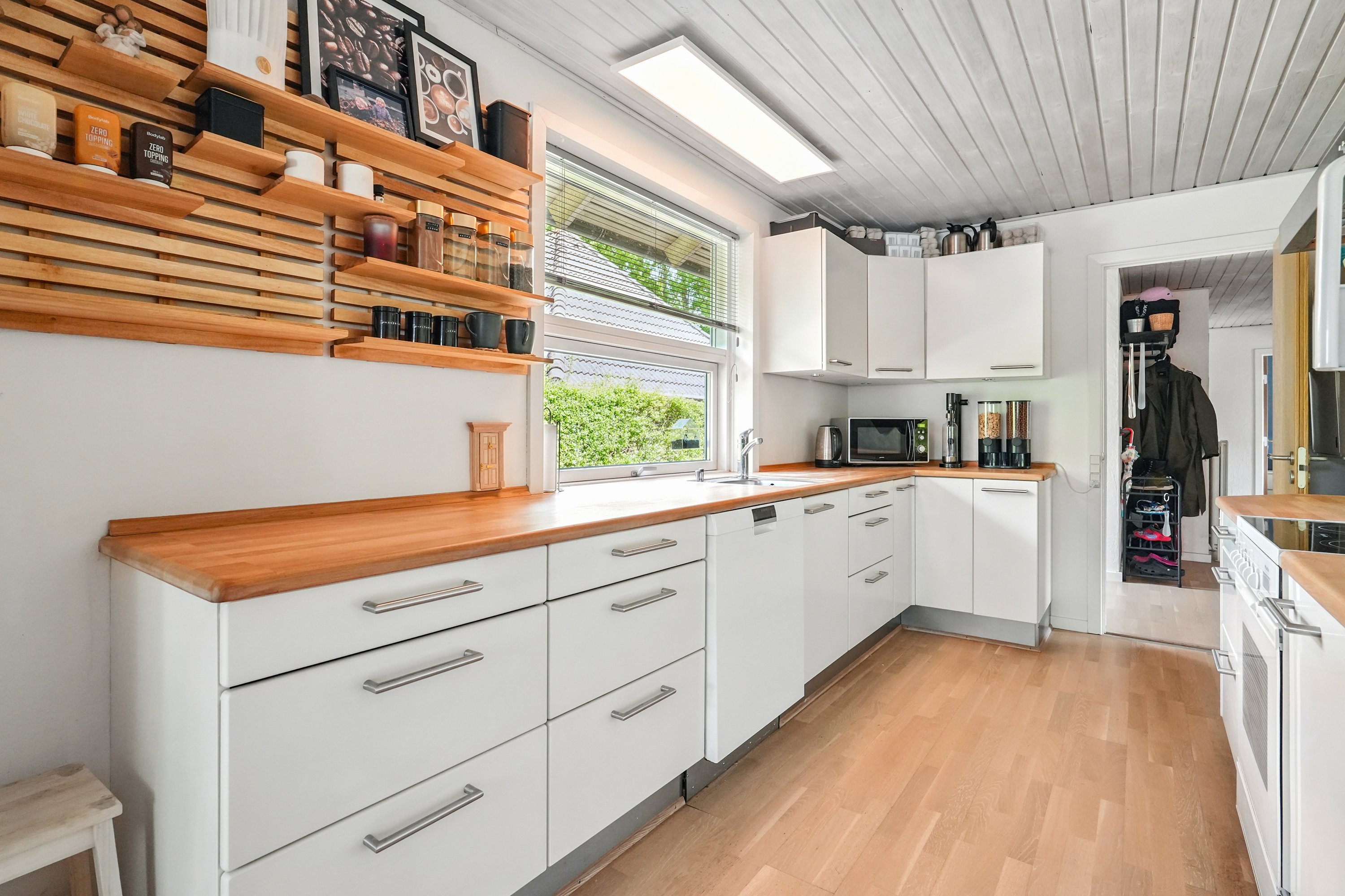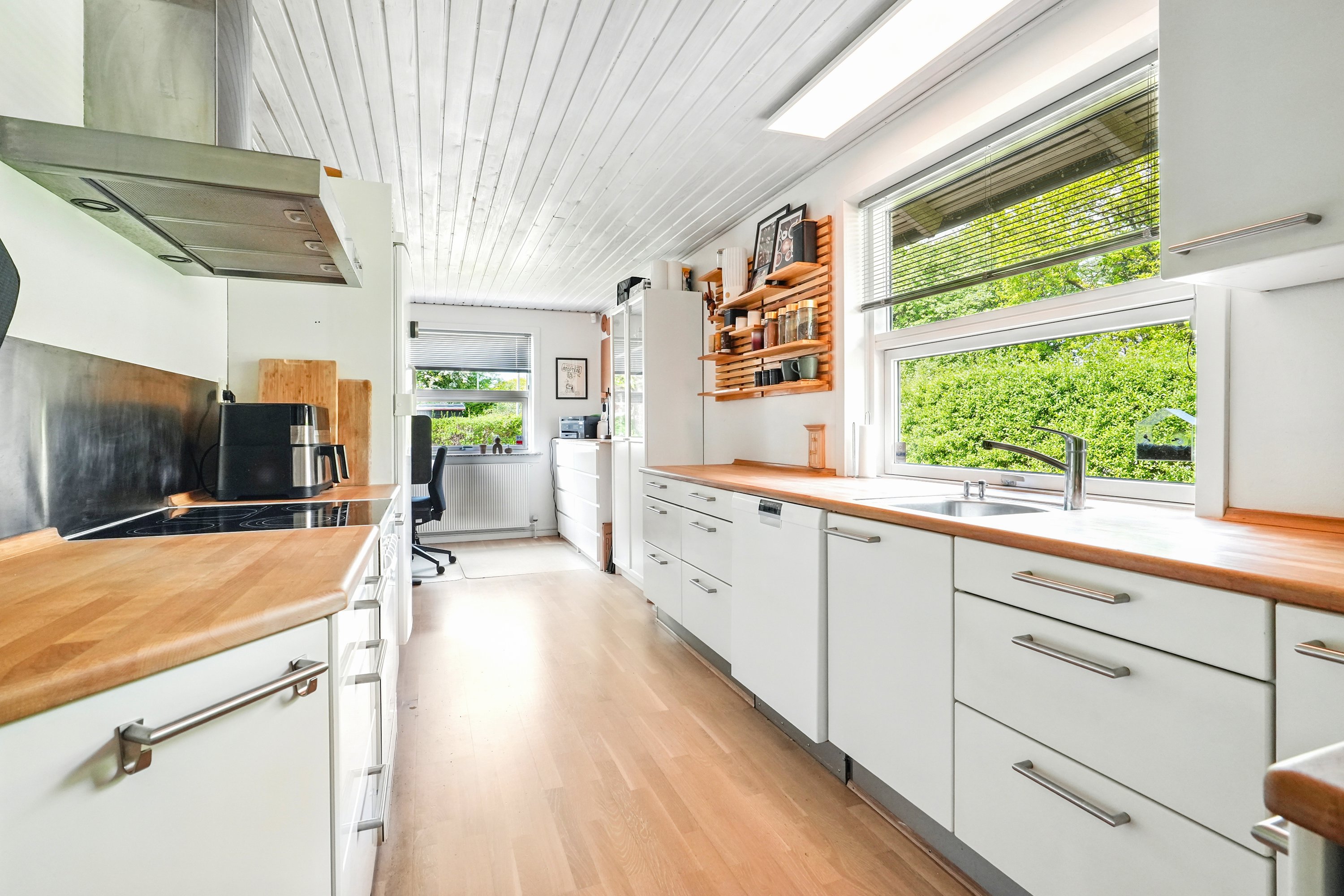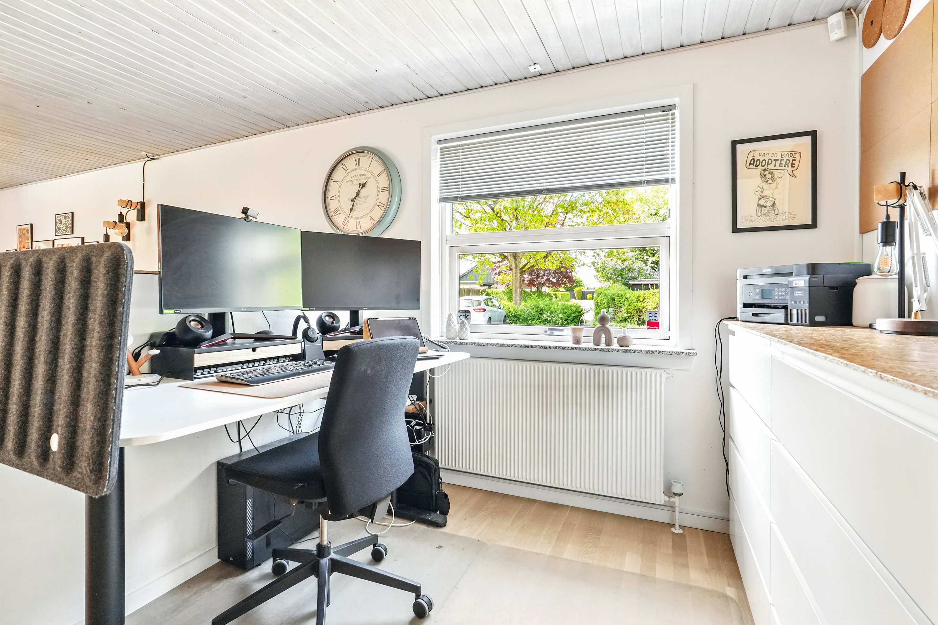 Indenfor byder boligen på en gennemtænkt planløsning med tre rummelige værelser, alle med god skabsplads, samt et lyst badeværelse med bruseniche og et ekstra gæstetoilet. Det funktionelle bryggers har både god opbevaringsplads og plads til vaskemaskine og tørretumbler.