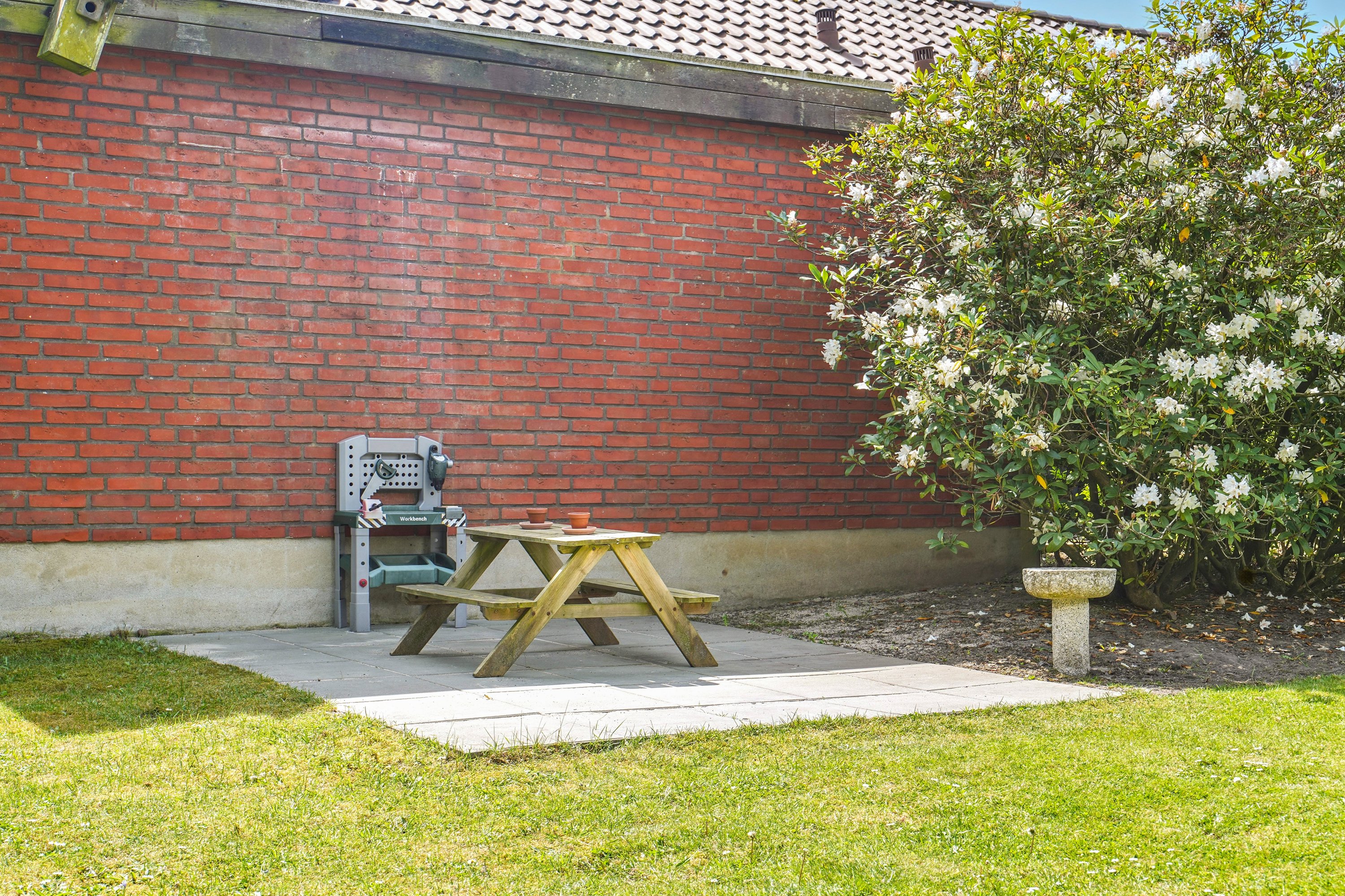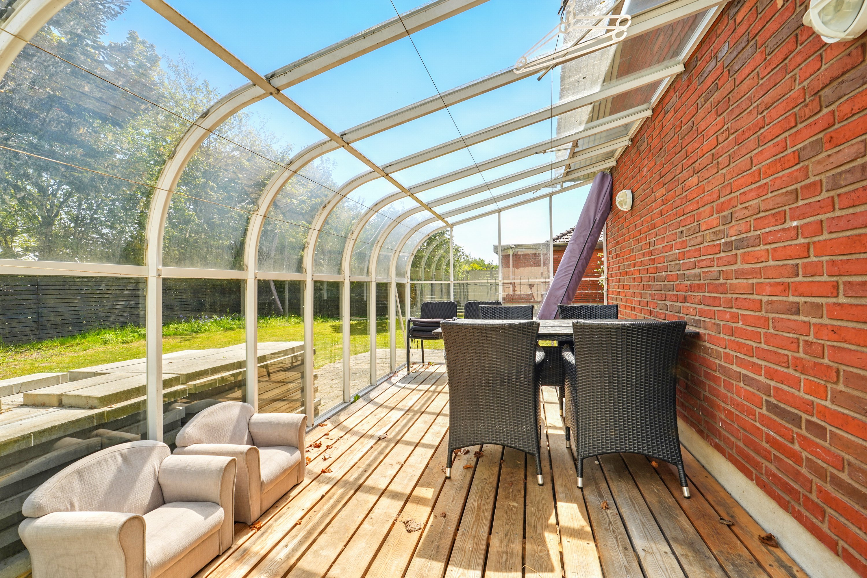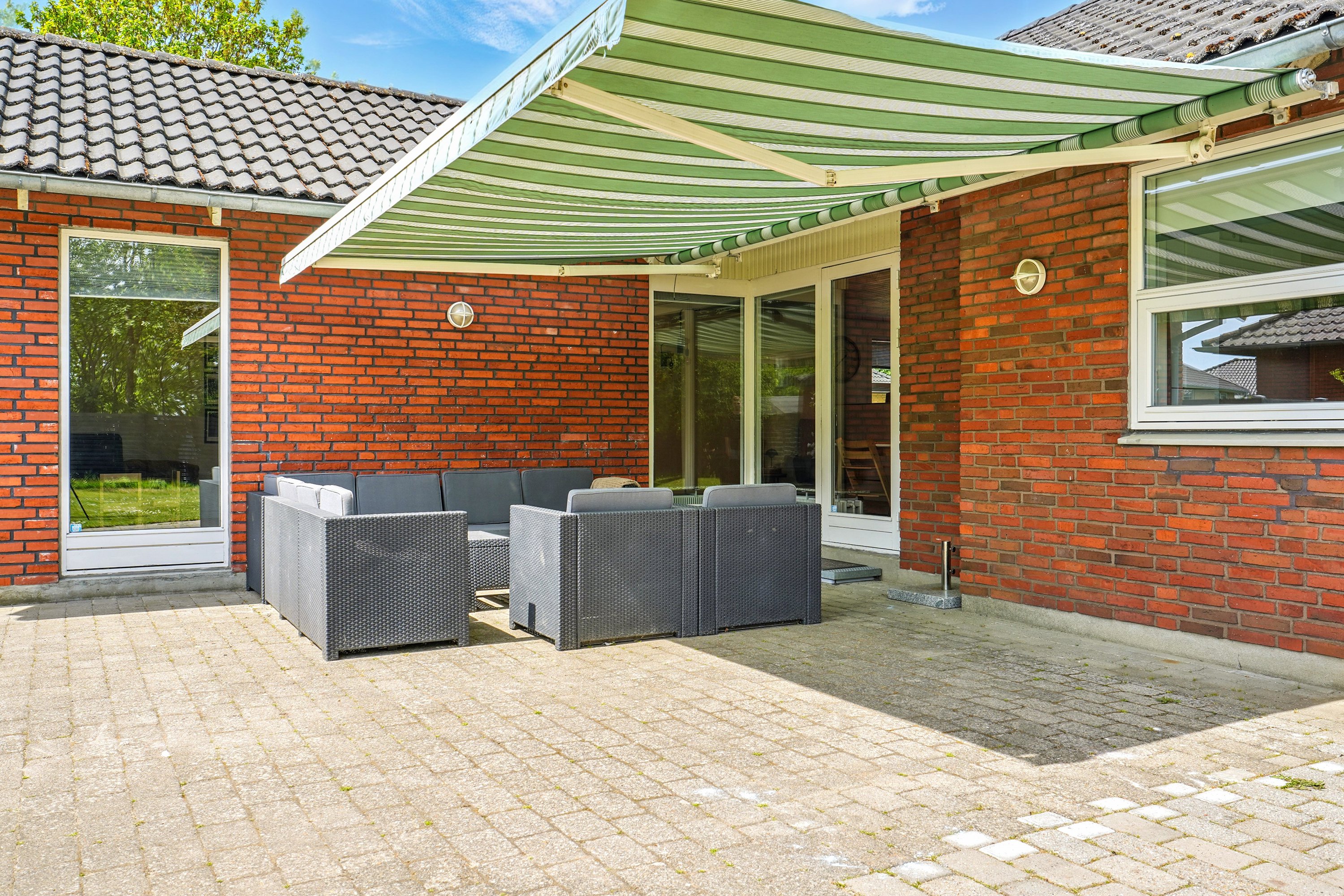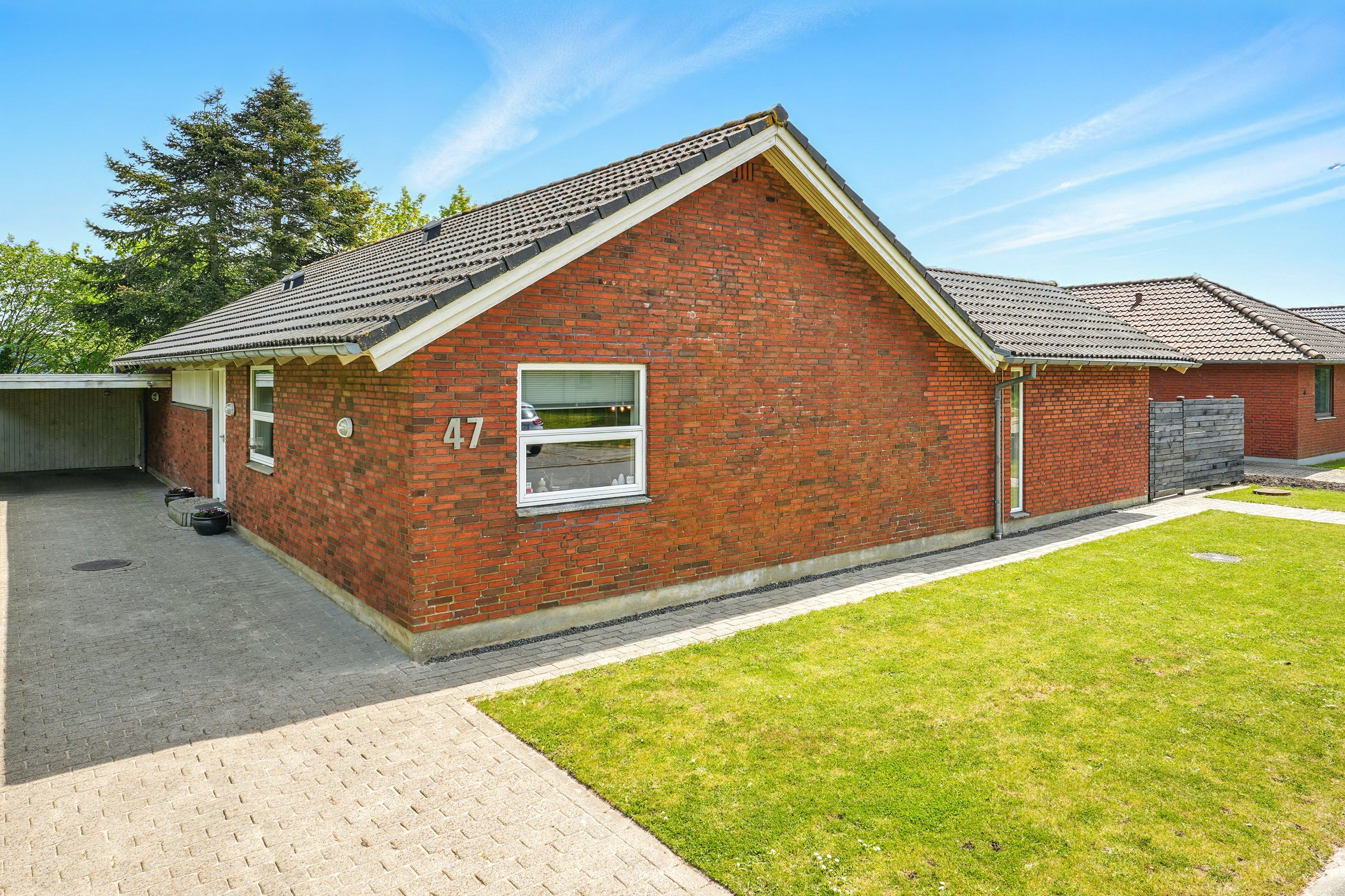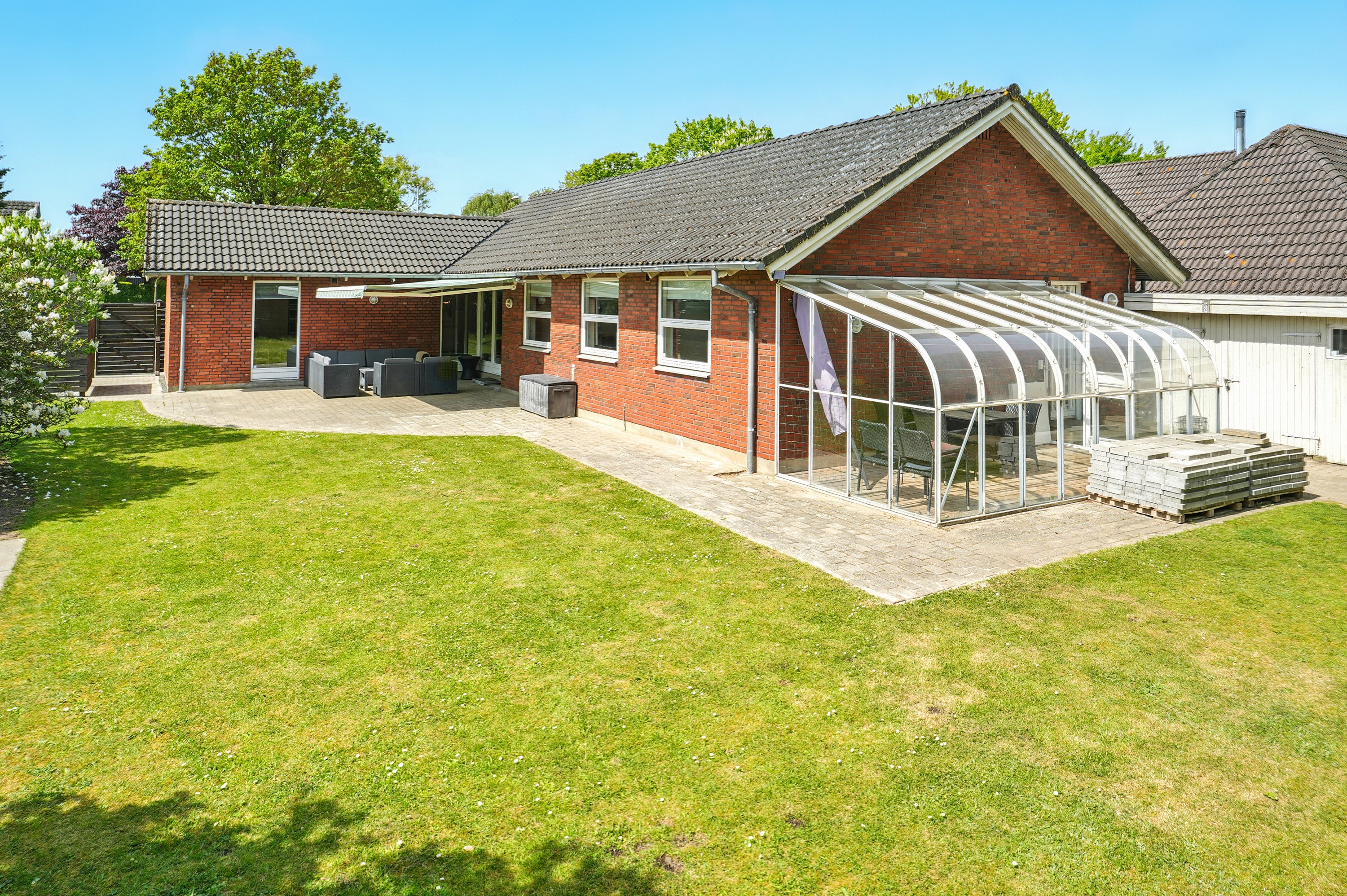 Haven er lukket og privat, hvilket skaber trygge og rolige rammer for leg og udeliv. Her findes også en hyggelig terrasse med markise, der ligger i direkte forbindelse til spisestuen – ideelt til både hverdag og gæster. Til boligen hører desuden en carport og et praktisk skur med plads til haveredskaber og opbevaring.