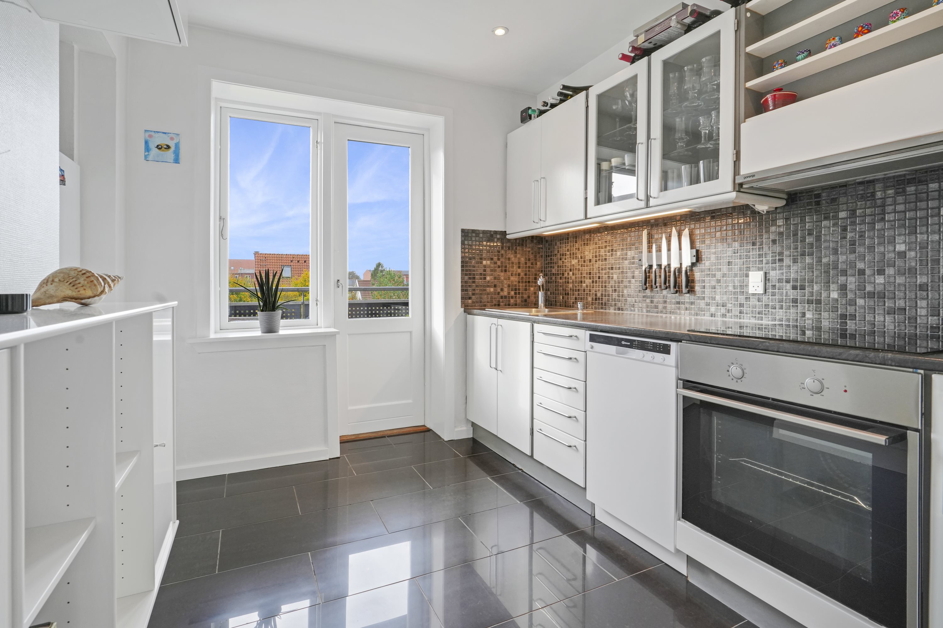 Lejligheden i Svendsgade er en del af en velfungerende ejerforening med en sund økonomi, hvor der er styr på tingene og fokus på god vedligeholdelse – blandt andet er taget skiftet.Lejligheden byder på en dejlig rummelig altan med plads til at nyde solen og en skøn udsigt. De originale trægulve gennem boligen skaber en indbydende atmosfære, og i soveværelset er der god skabsplads, så der er rig mulighed for opbevaring. Køkkenet er funktionelt med masser af skabs- og bordplads, og herfra har man også direkte adgang til altanen – perfekt til en morgenkaffe eller middag under åben himmel.