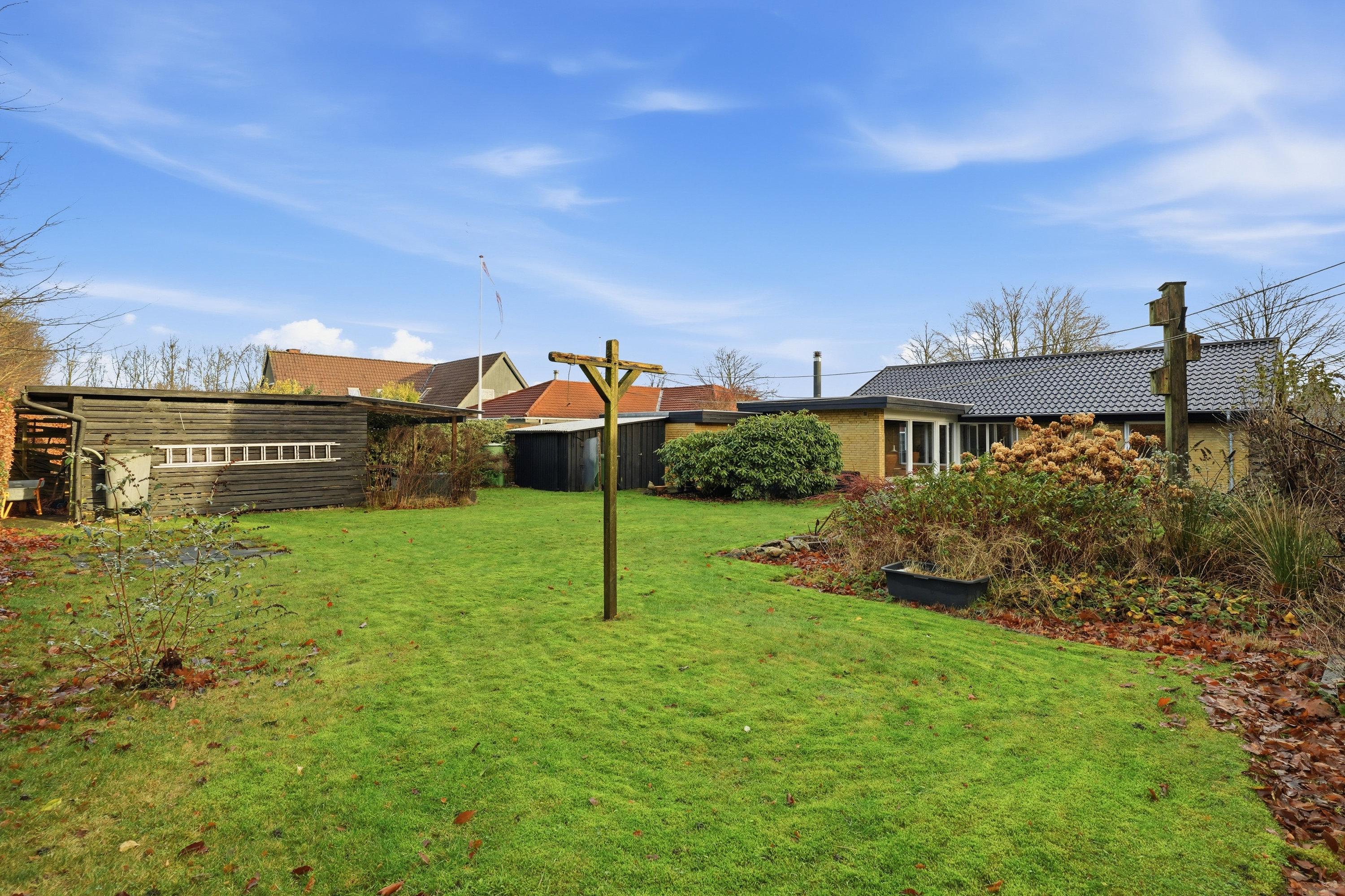 Den lukkede have giver et privat og roligt uderum, hvor der er plads til både afslapning og små projekter. Her finder du også et praktisk brændeskur samt en god garage med elport, som giver fleksibilitet til både bil, opbevaring eller hobbyaktiviteter. Beliggenheden er attraktiv med kort afstand til både skole, byens anlæg, banegård og indkøbsmuligheder. Byens stadion ligger lige i baghaven, så du har mulighed for at følge med i det lokale sportsliv, samtidig med at du bor tæt på både natur og byens øvrige faciliteter.