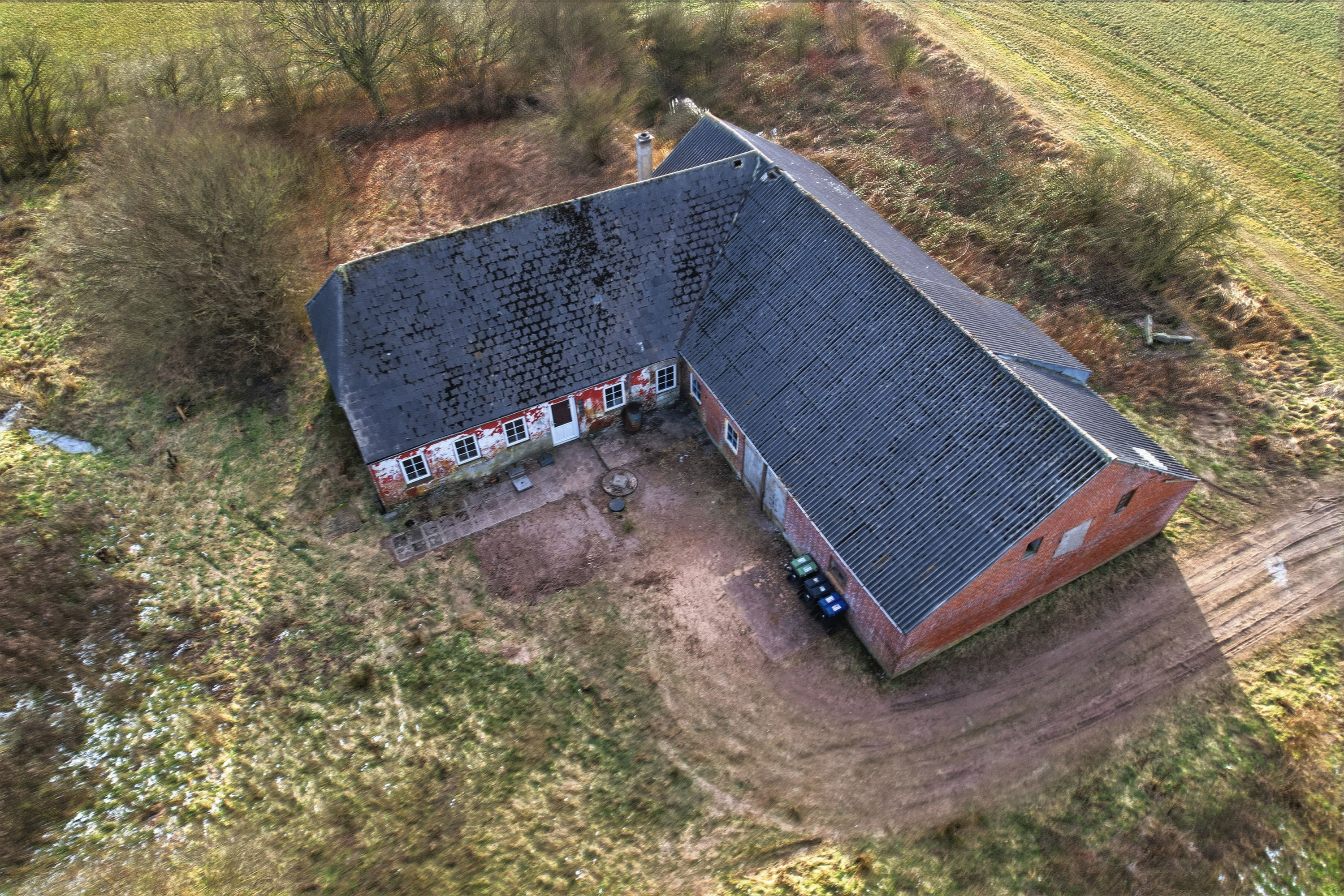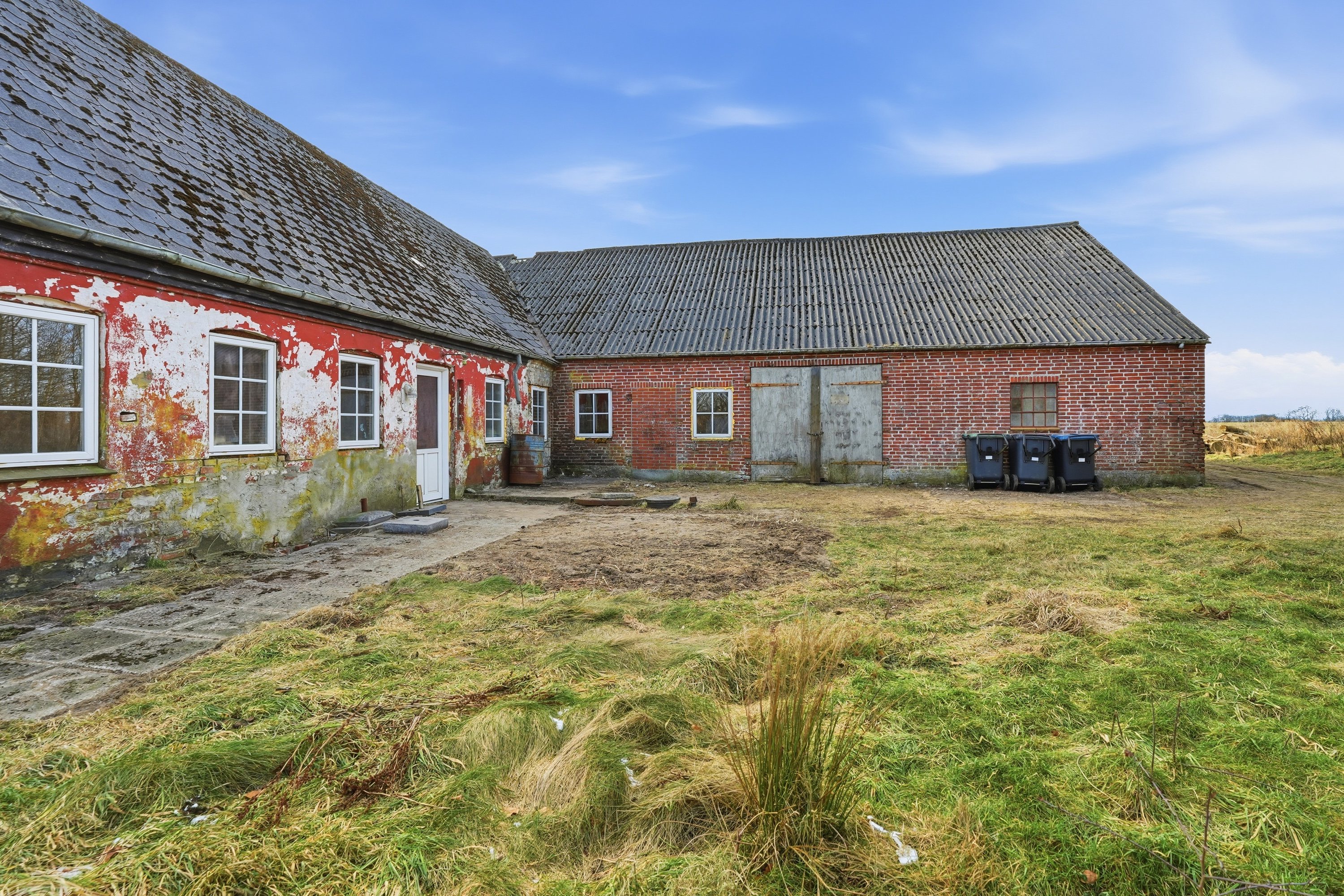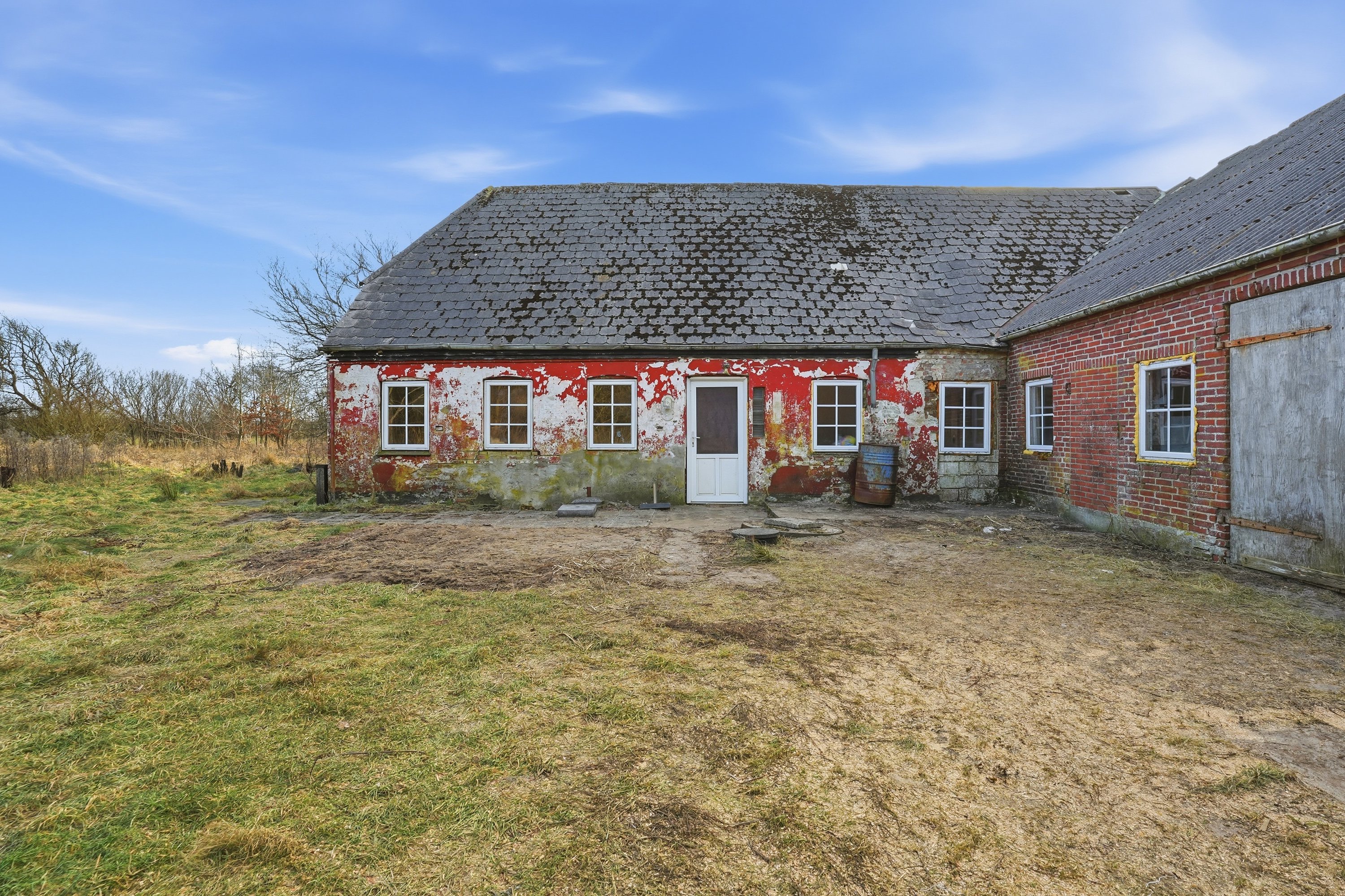 Ejendommen har stået ubeboet i en årrække, hvormed bygningerne indvendigt også fremstår uden inventar, gulve m.v., og det er derfor vigtigt at understrege, at der er tale om et regulært håndværkertilbud. Til gengæld giver det dig som kommende ejer frie hænder til at tænke kreativt og forme ejendommen præcis efter egne ønsker – uden hensyn til eksisterende løsninger.