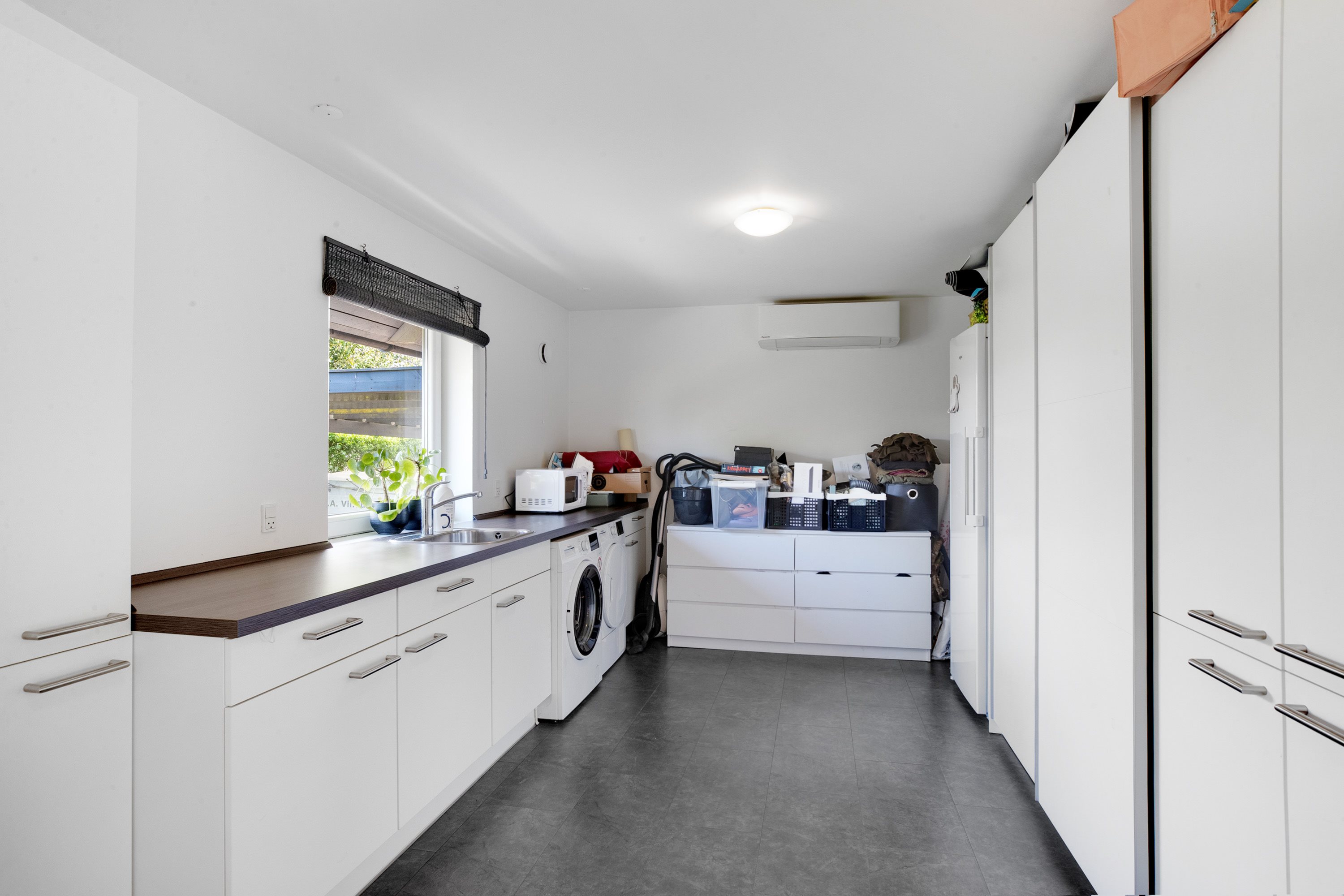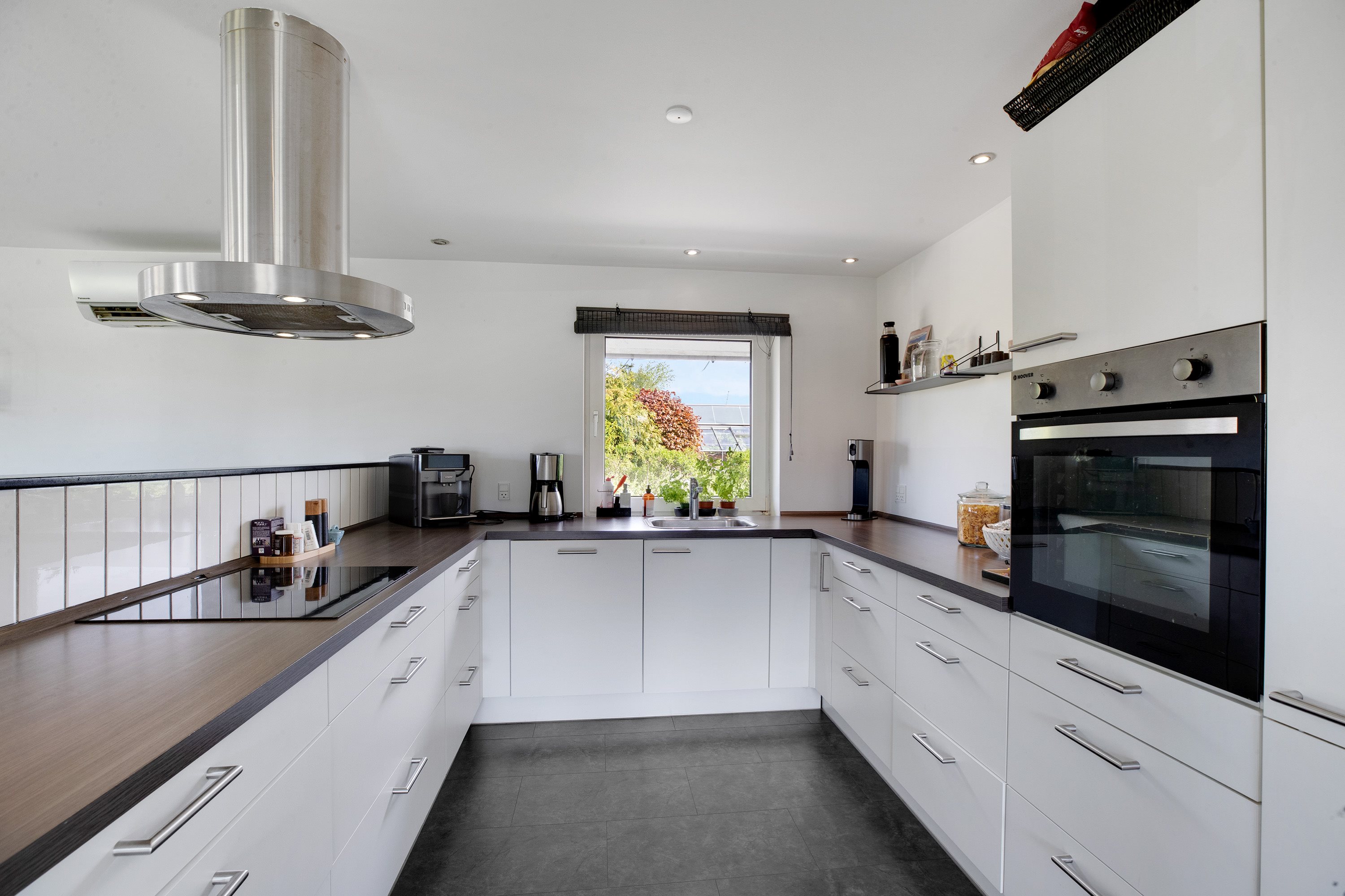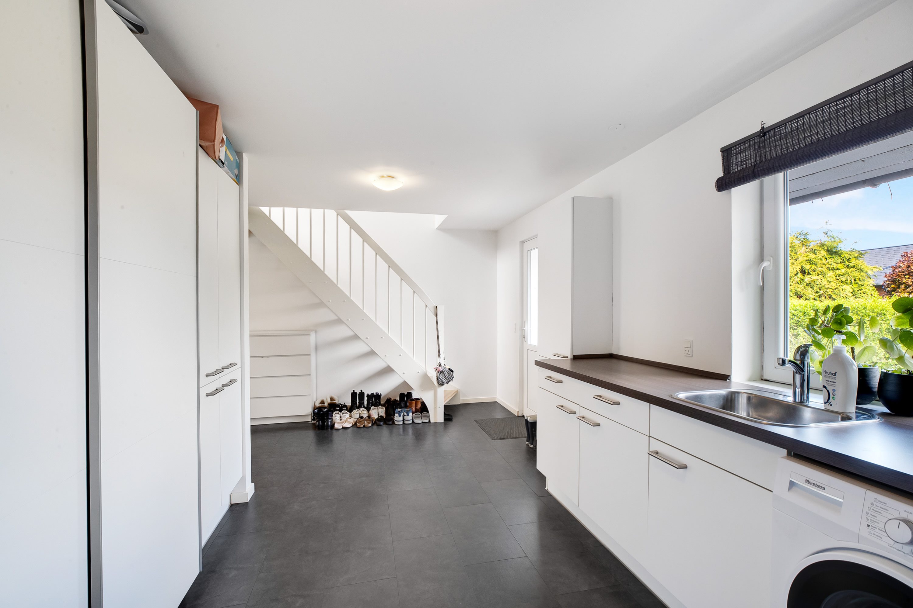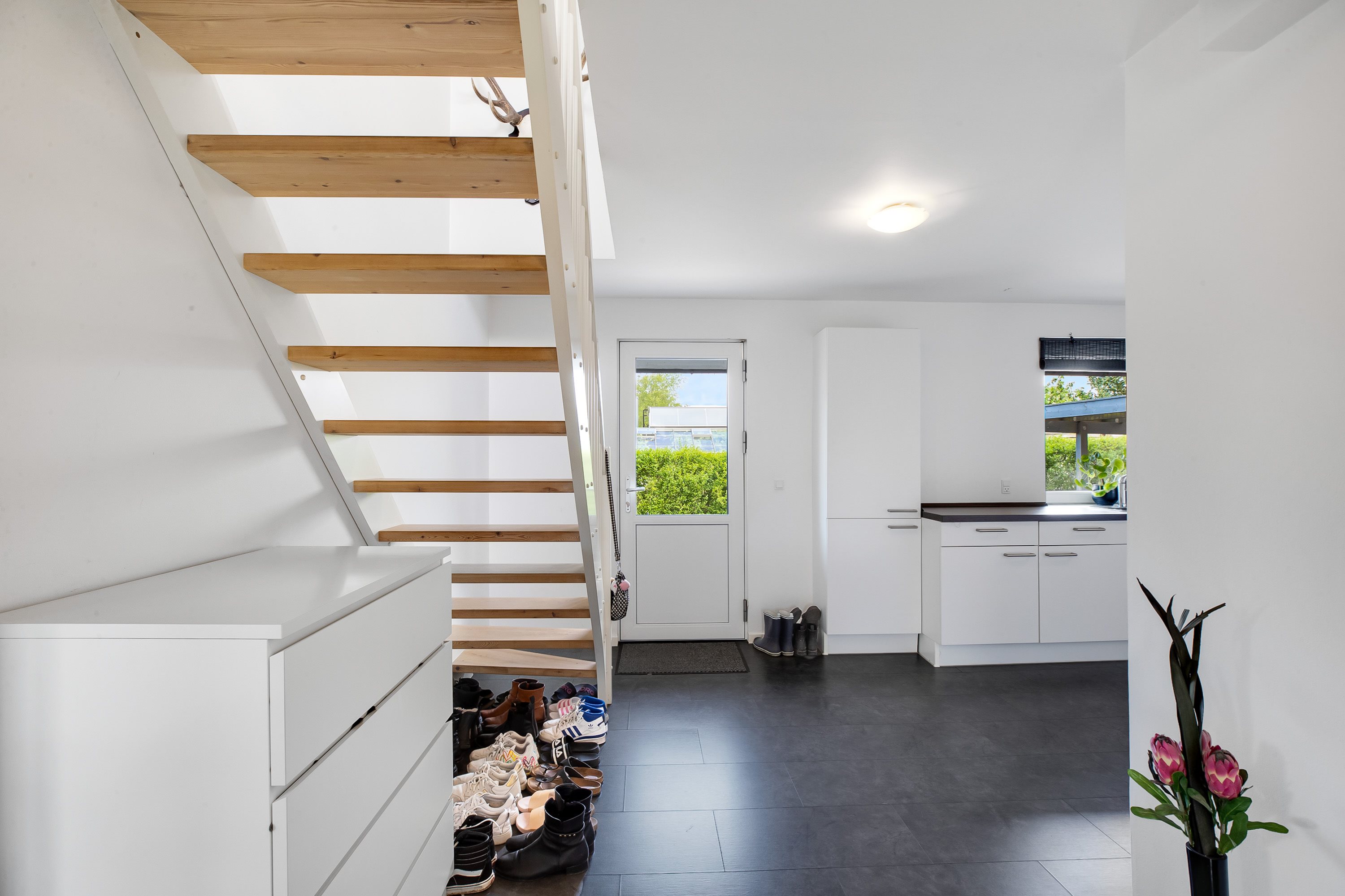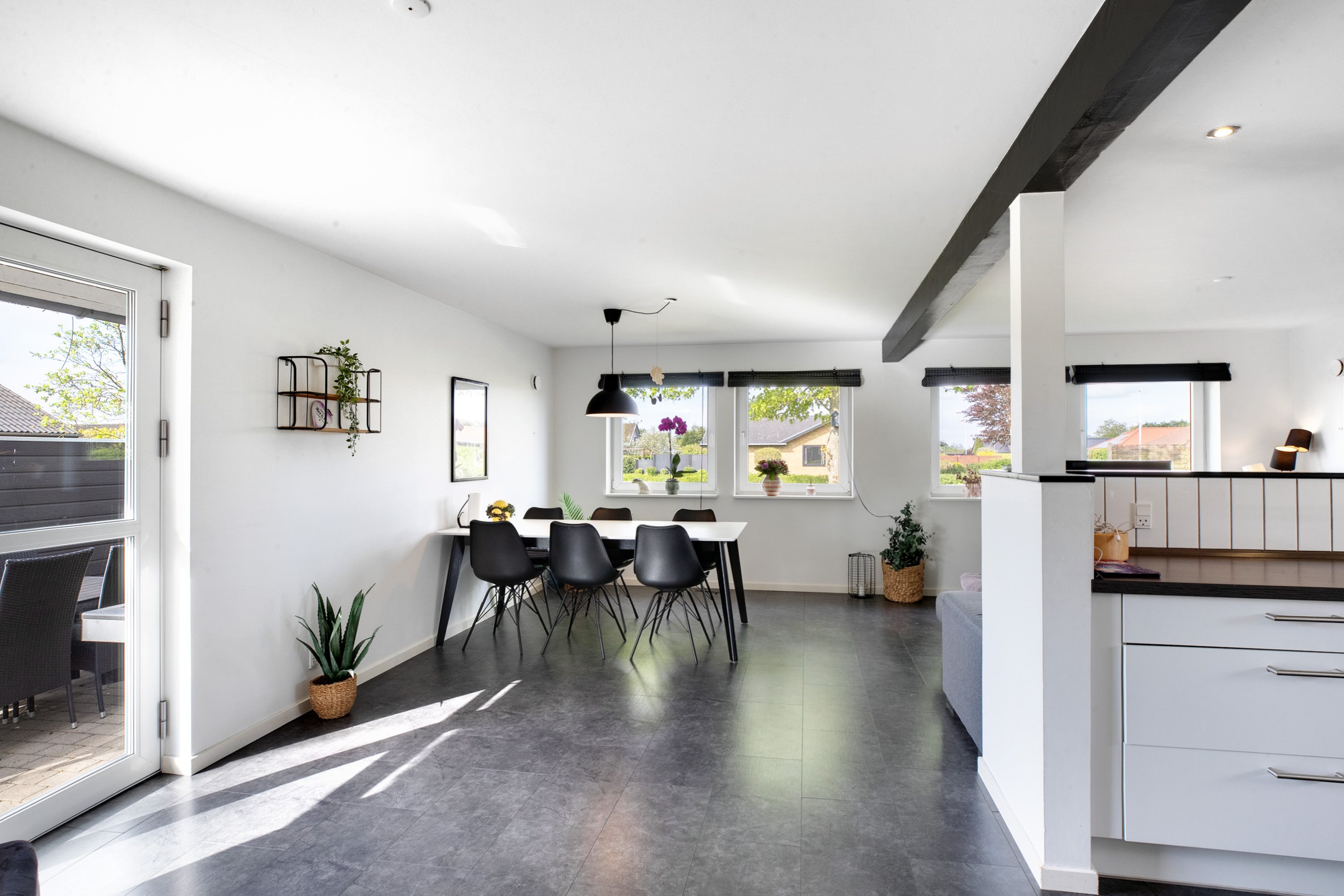 Udendørs venter en dejlig og ugeneret have med masser af plads til både afslapning, leg og boldspil. Den store terrasse inviterer til lange sommeraftener, mens den omkransende hæk sikrer både privatliv og ro.