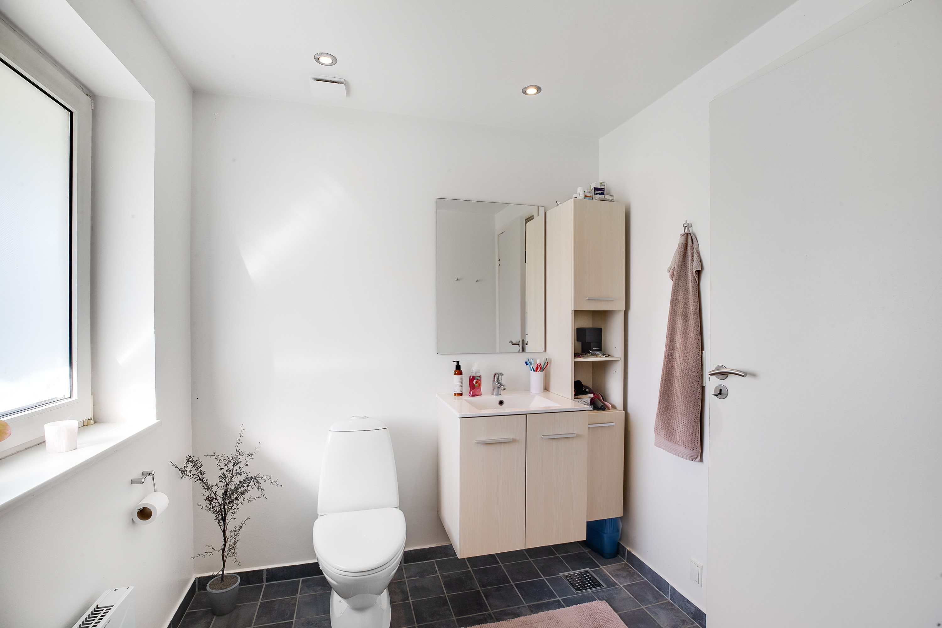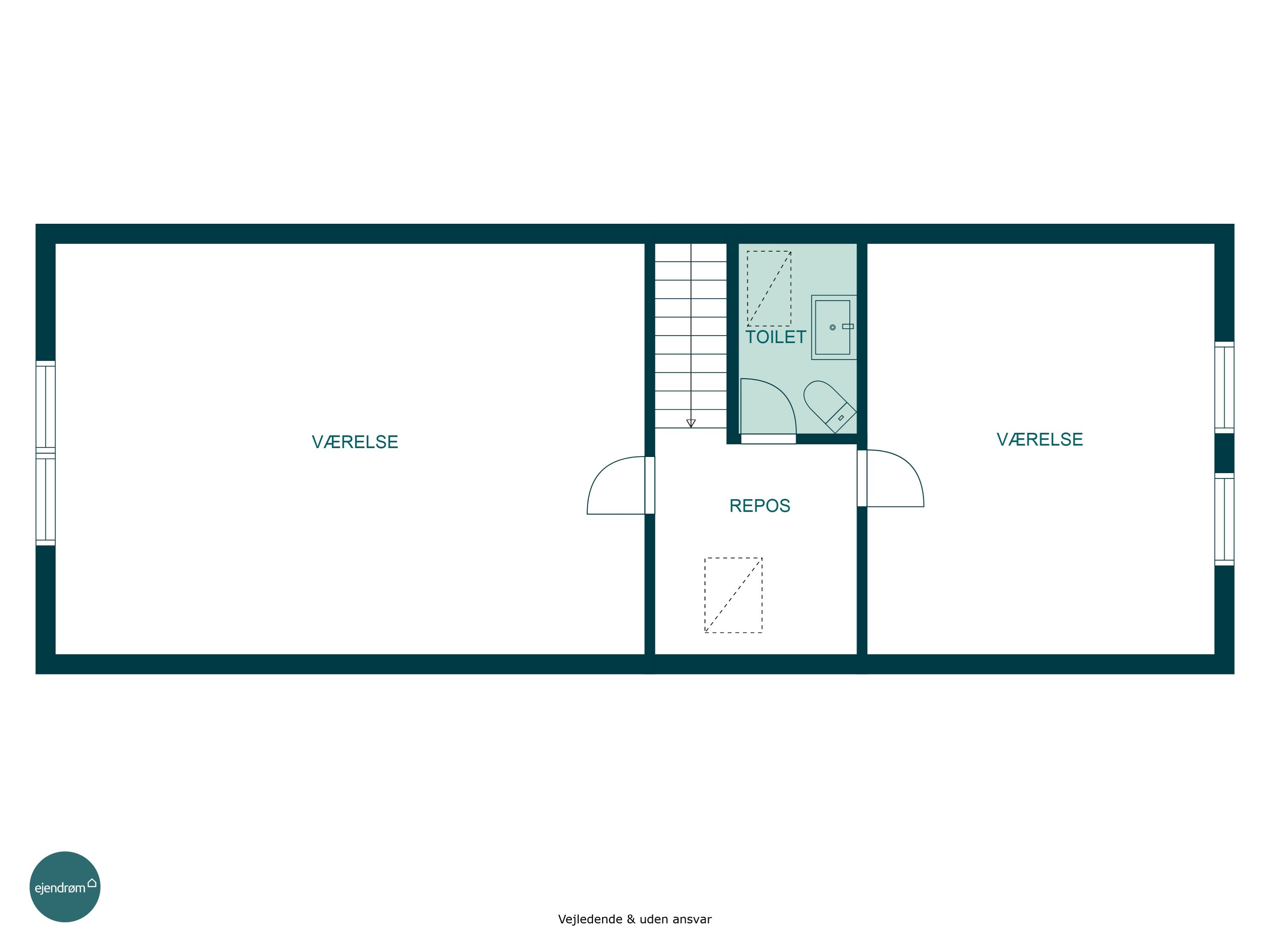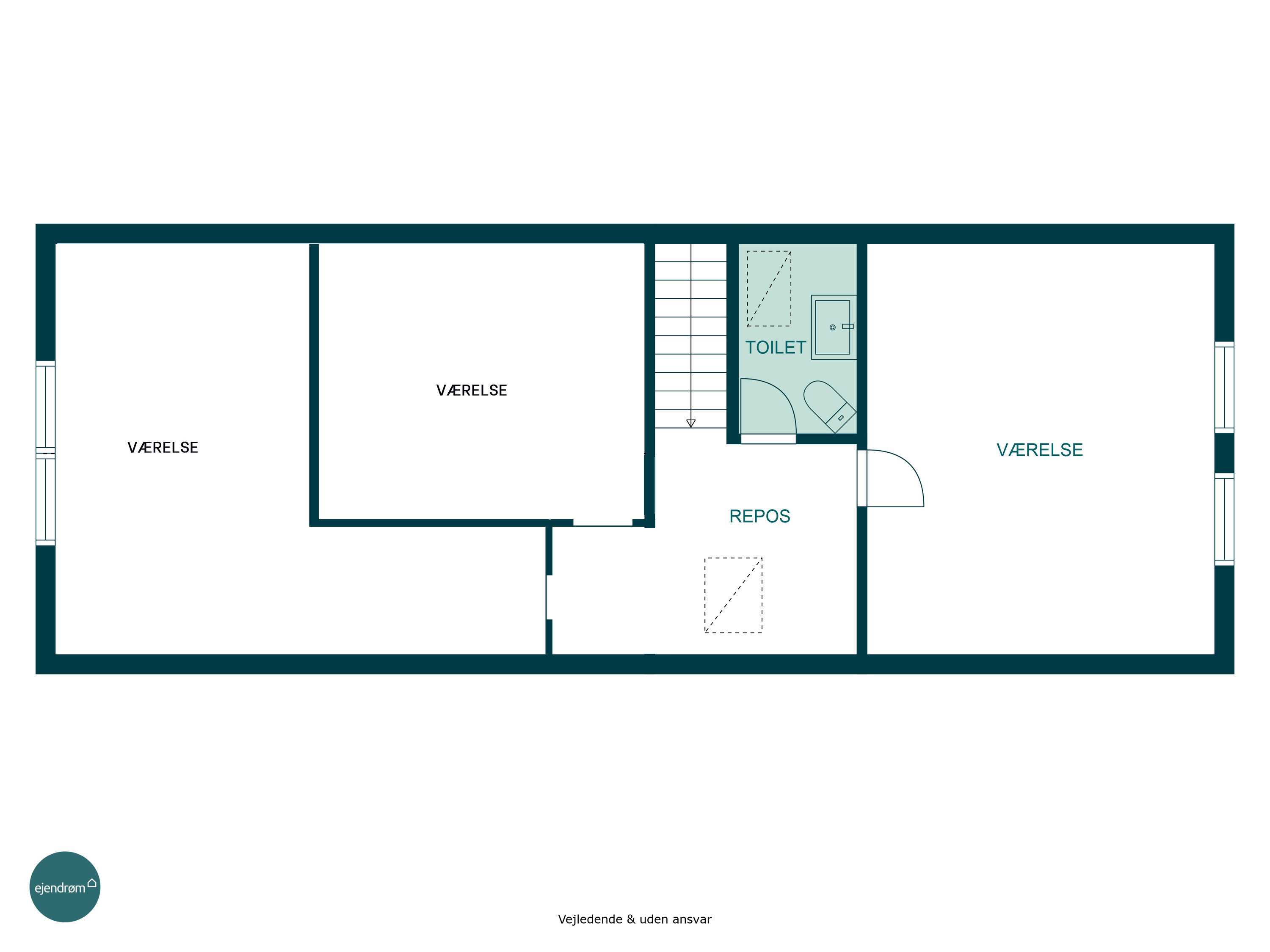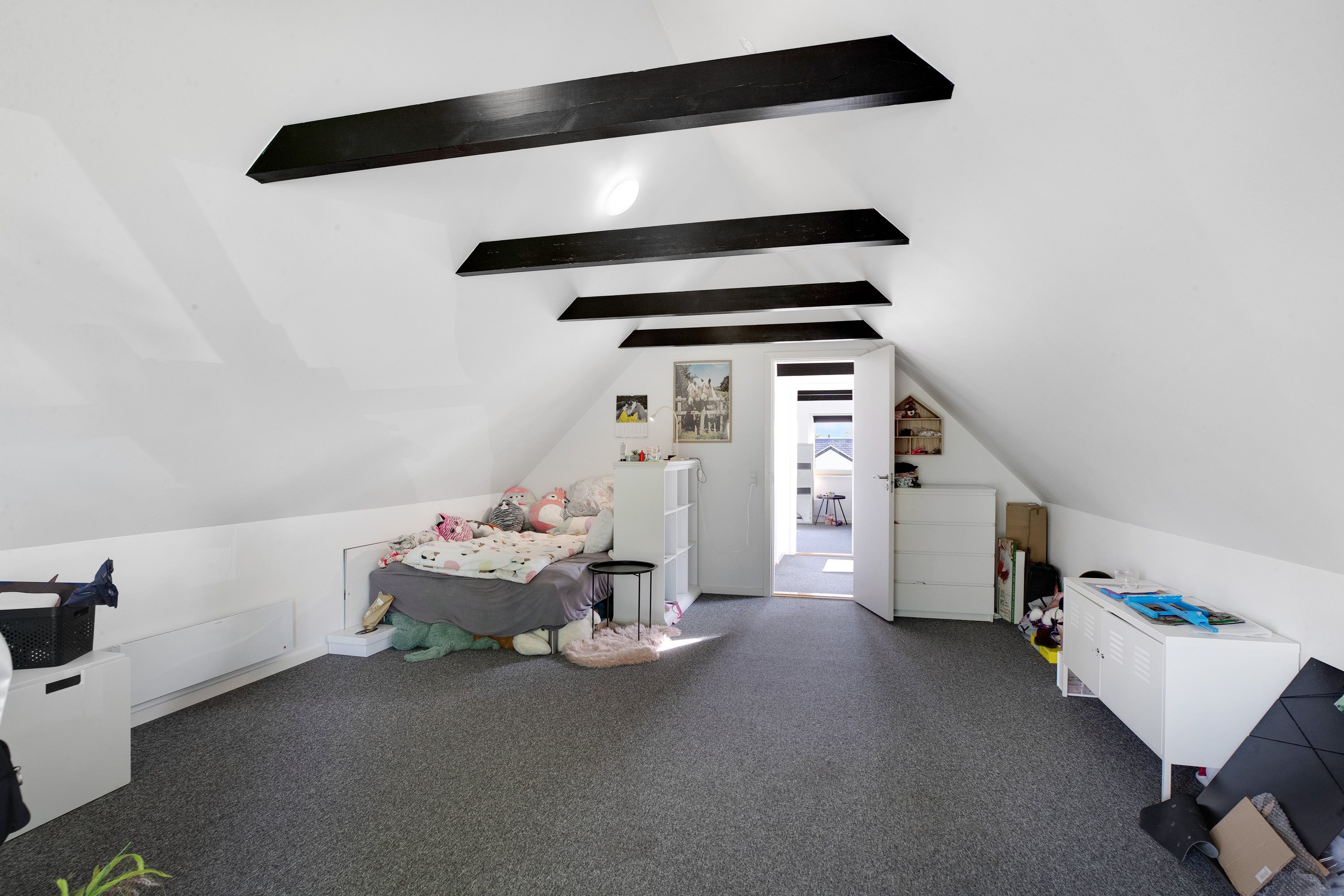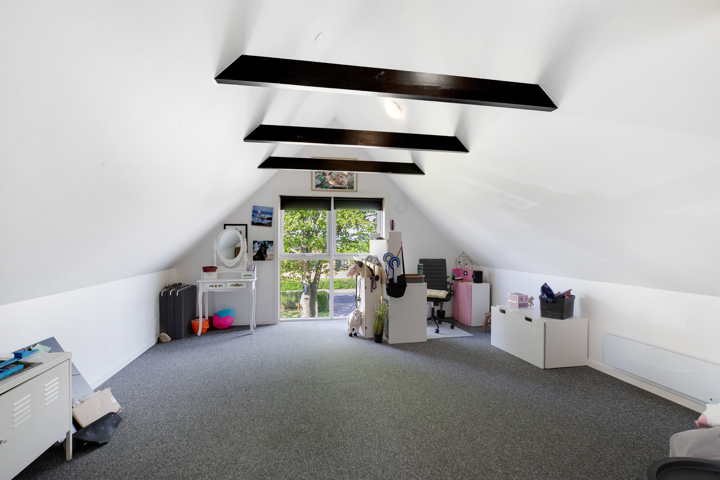 Villaen rummer i alt tre gode værelser – ét i stueplan og to på førstesalen, hvor der tillige findes et tilstødende toilet. Den oplagte fordeling gør det muligt at indrette en separat forældreafdeling eller give teenageren sit eget område.