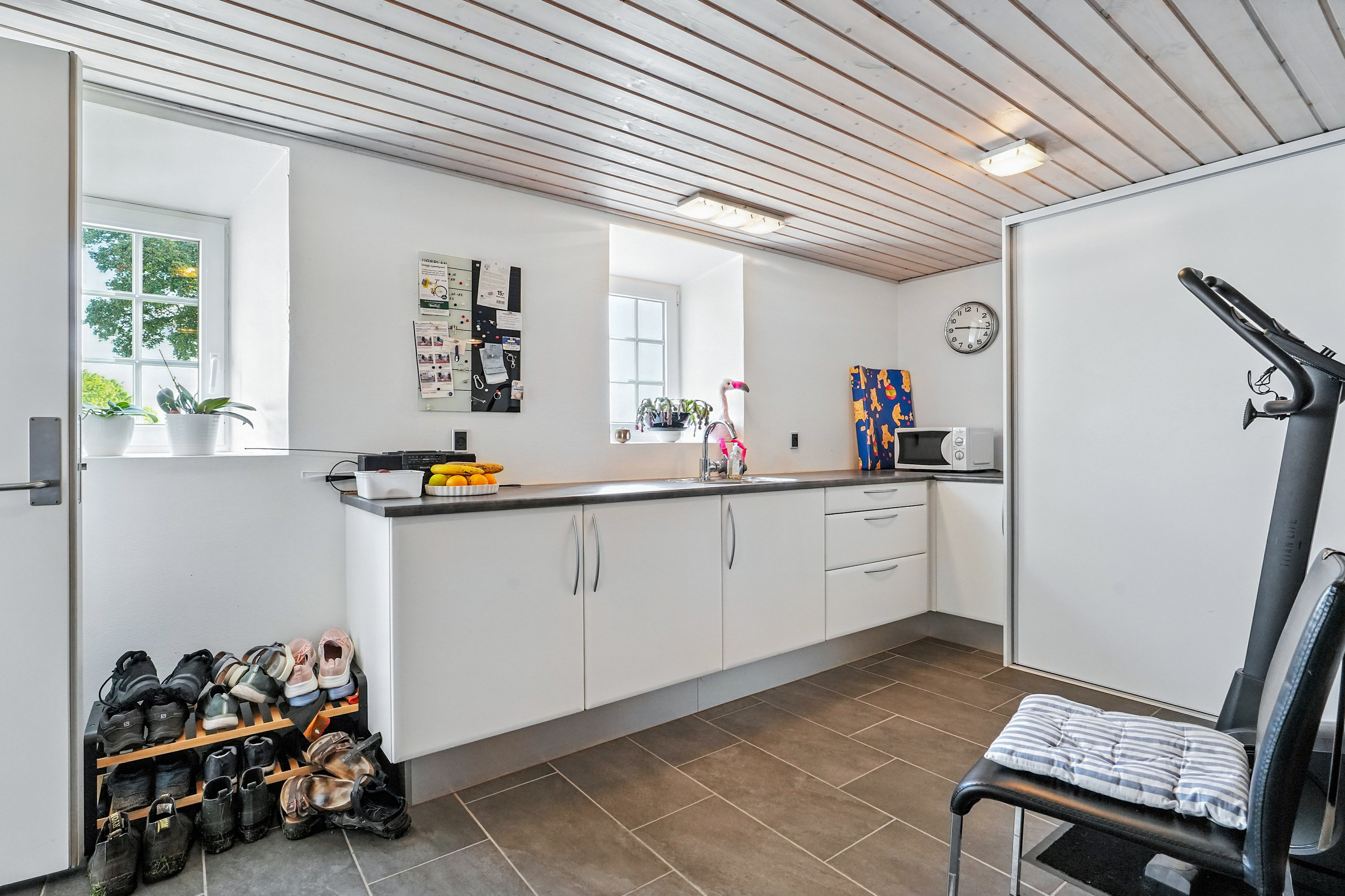 Og så er der naturligvis kronen på værket: Den enorme gildesal med både eget køkken og badeværelse. Her er der plads til alt fra runde fødselsdage til nytårsfester og hverdags-hygge i stor stil.