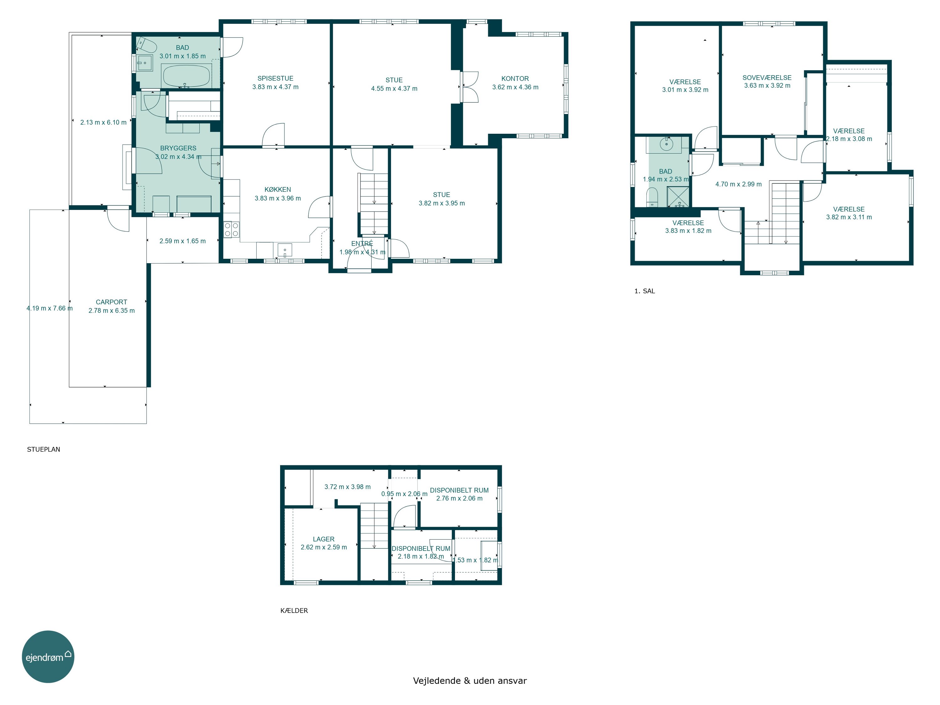 Kælderen tilbyder ekstra opbevaringsmuligheder og anvendelige disponible rum, ideelle til hobbyaktiviteter eller som vinkælder.
