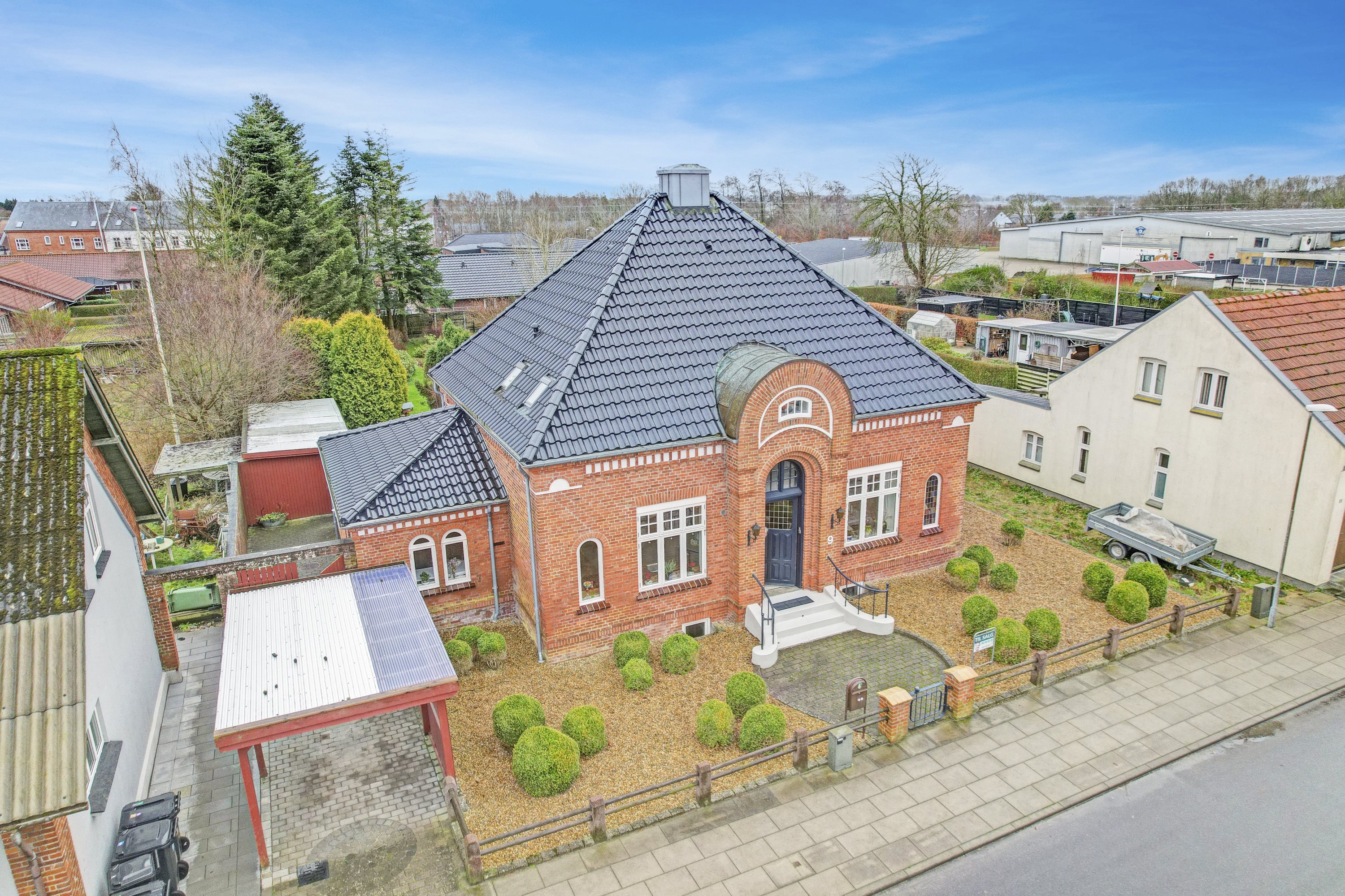 Denne smukke ejendom på Vestergade 9 i Gørding forener funktionalitet og æstetik med sit unikke arkitektoniske udtryk. Ejendommen byder på tre plan: stueplan, førstesal og kælder, og fremstår som et hjem med plads til både familieliv og praktiske gøremål. Villaen er løbende renoveret med bl.a. tegltag og vinduer. Med andre ord får man et indflytningsklart hjem, hvor rammerne er perfekte.