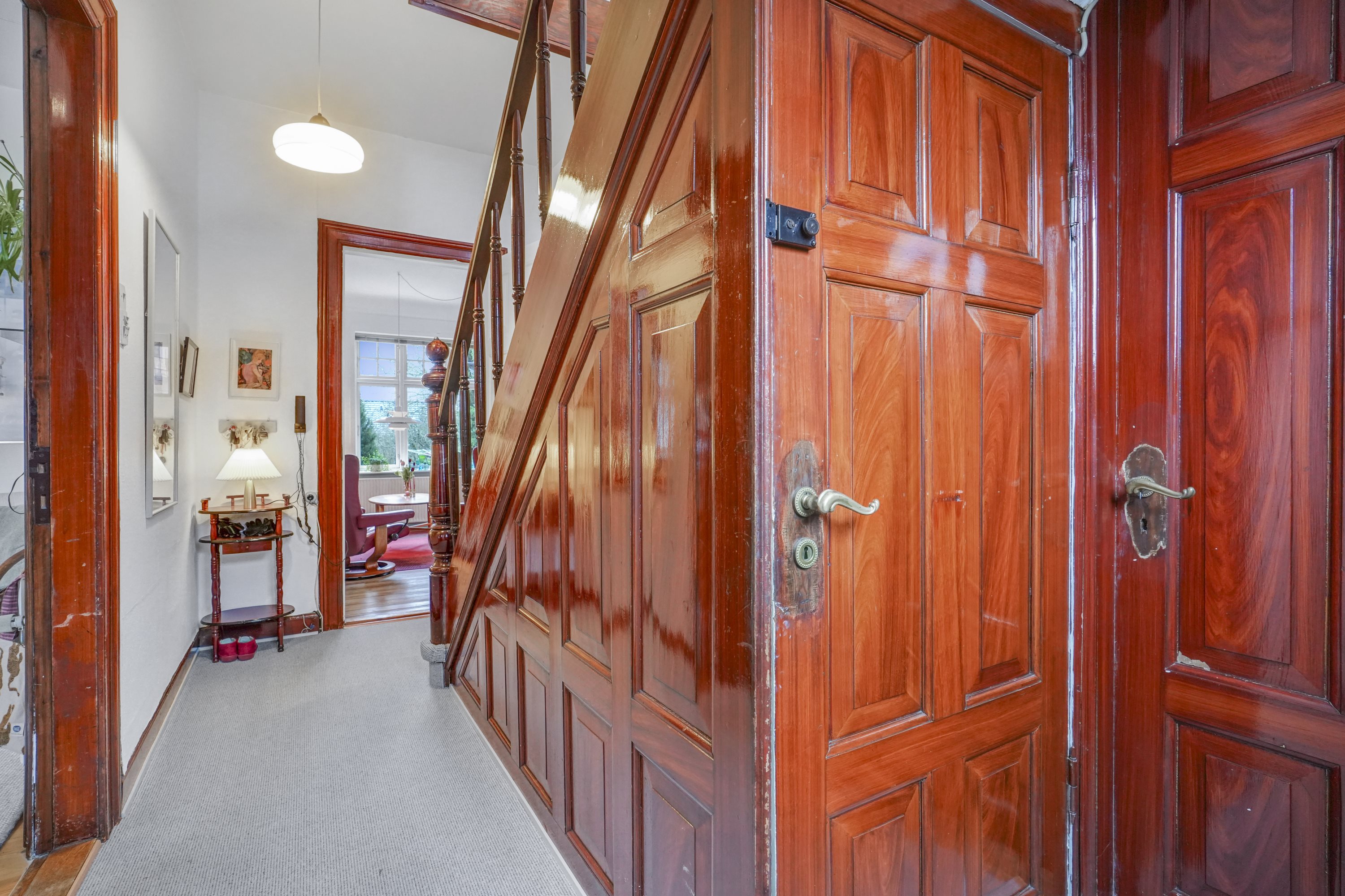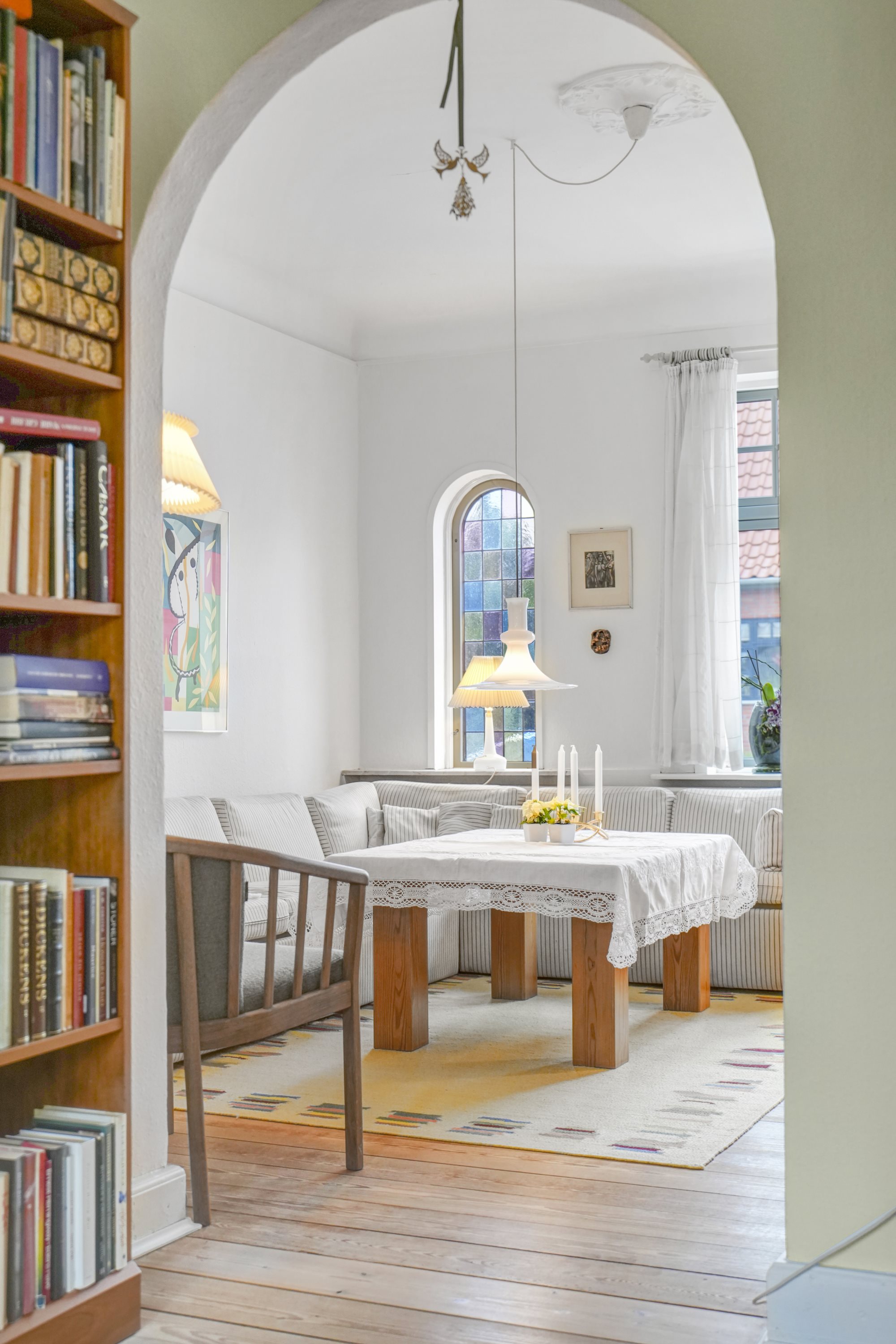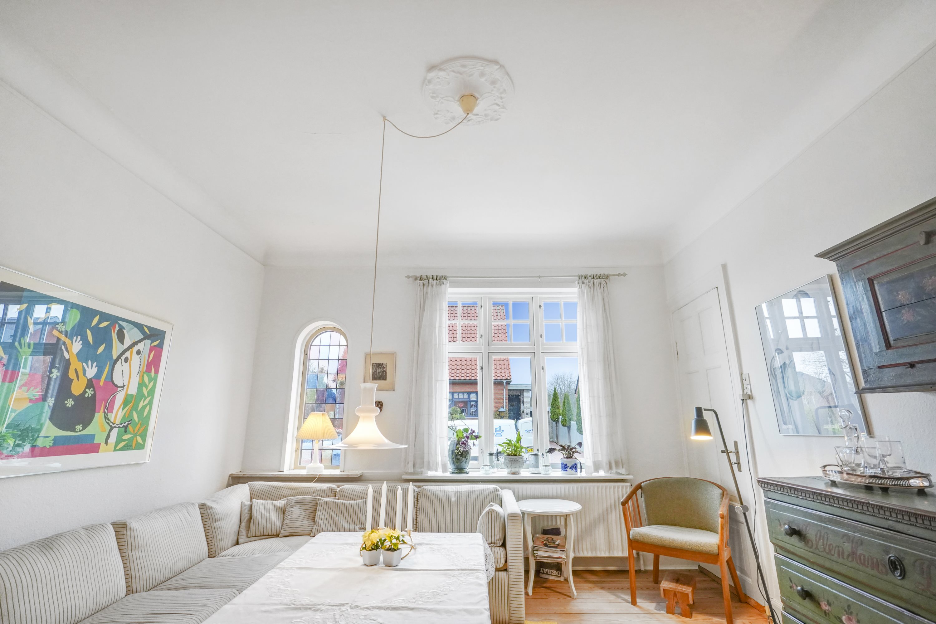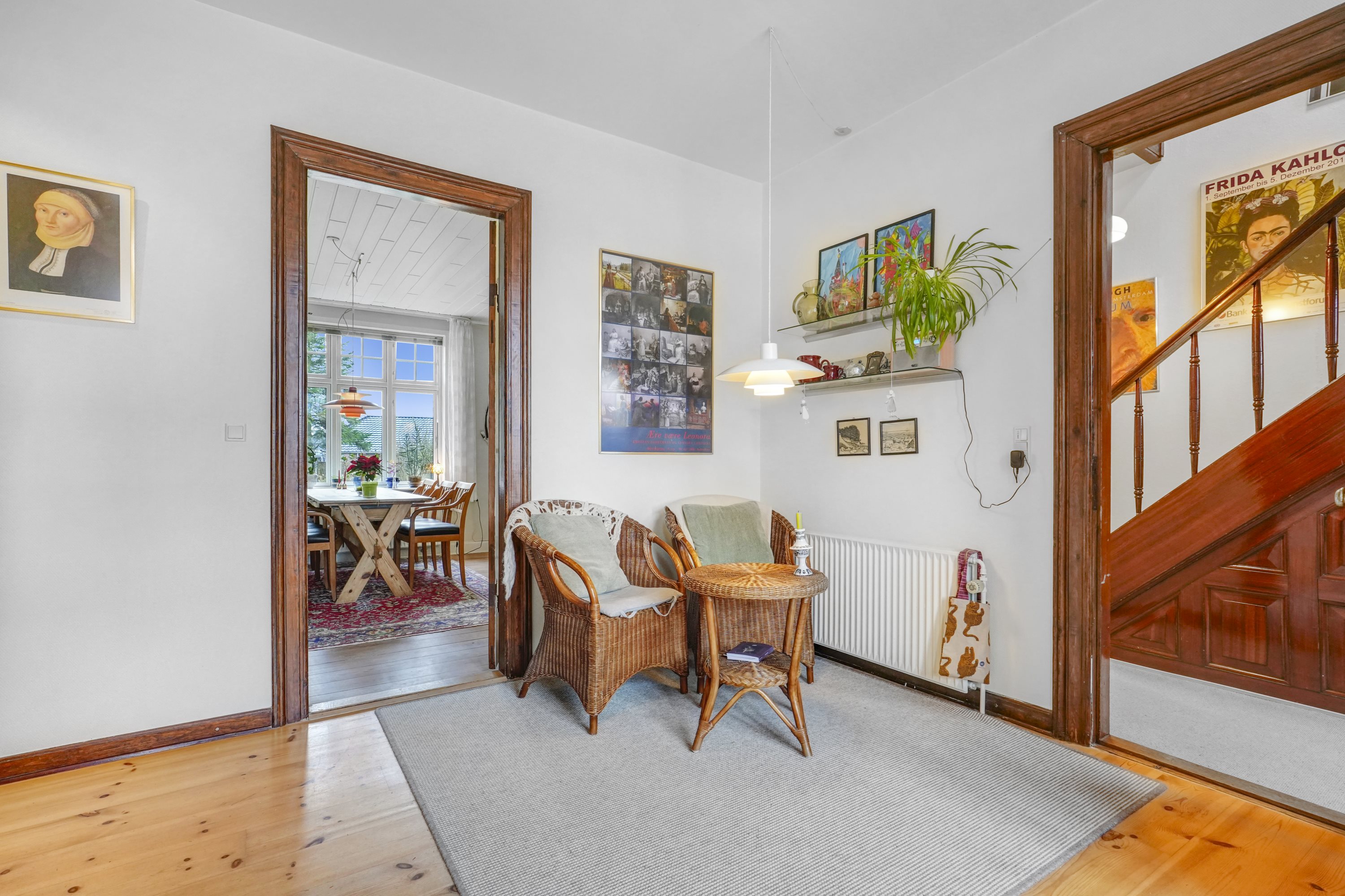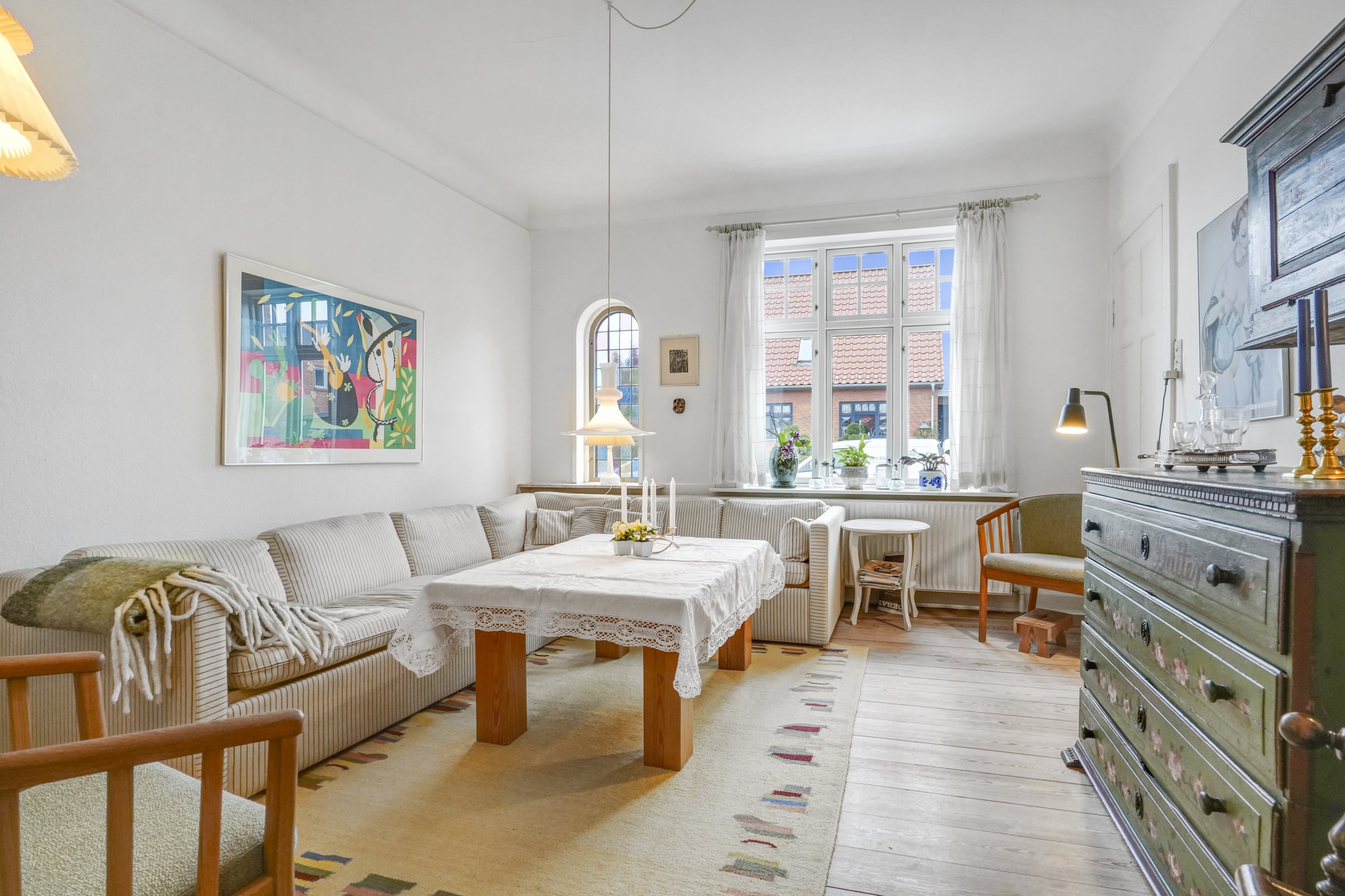 Denne bolig på Vestergade 9 fremstår som et solidt og stilfuldt hjem med historiske træk, der gør den ideel til en moderne familie med sans for arkitektur.