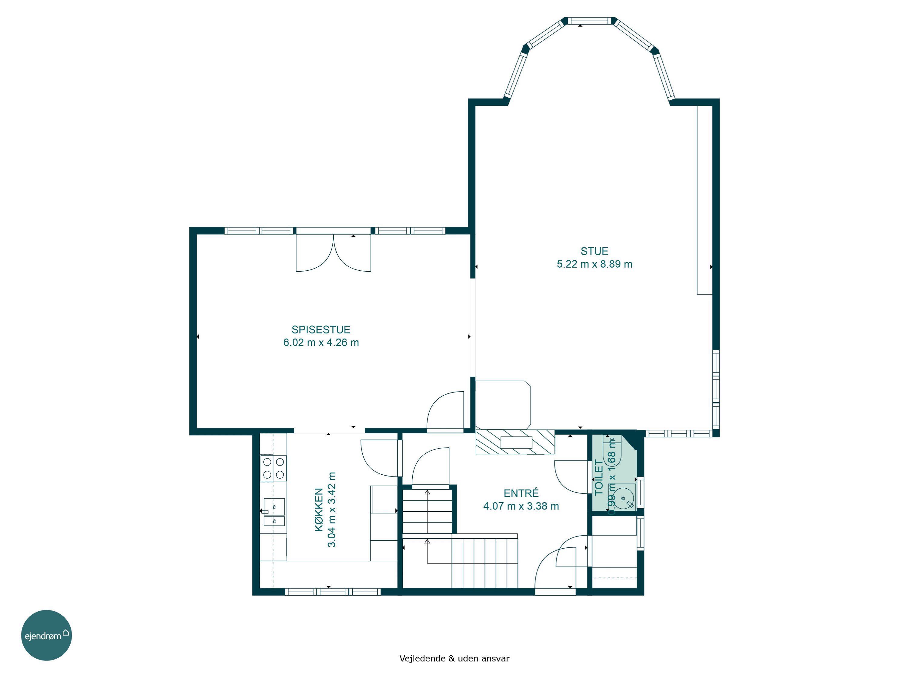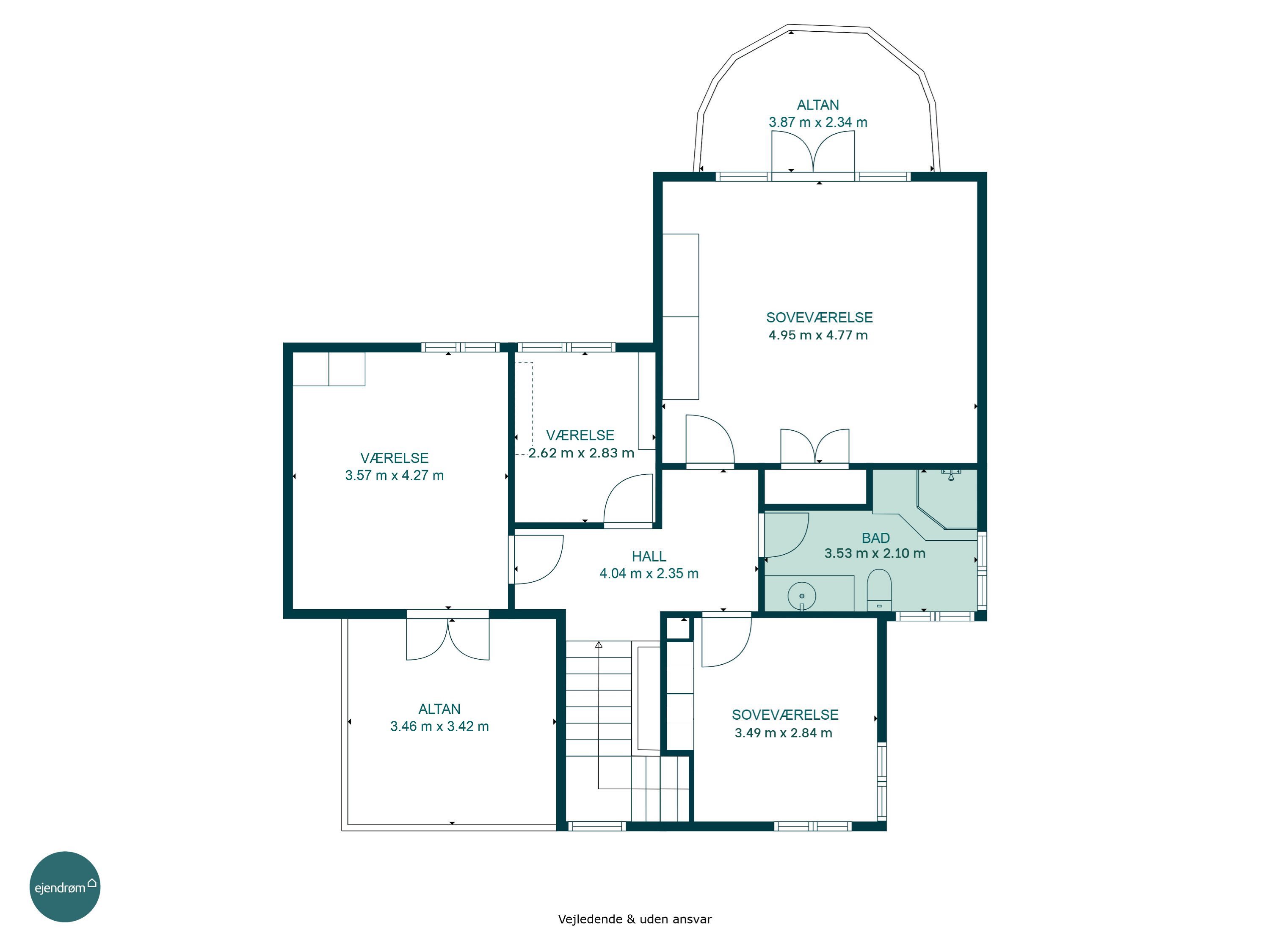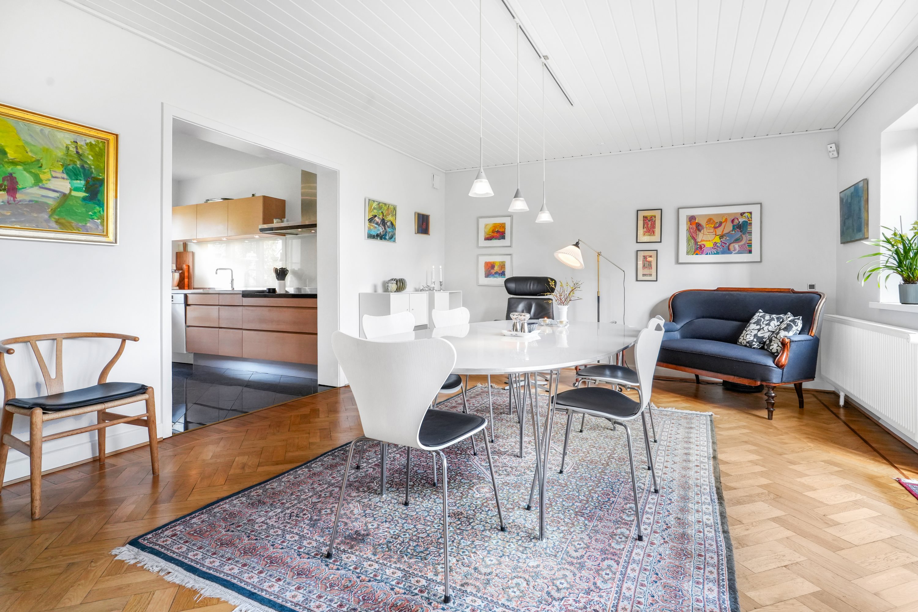 Stueplanet byder på en rummelig og lys opholdsstue med direkte adgang til spisestuen, hvor store dobbeltdøre inviterer haven indenfor. I sær karnappen er et kapitel for sig, hvor de mange vinduer skaber udsyn og et unikt lysindfald. Rummene bærer stadig de originale sildebensgulve, som ubevidst fortæller noget om villaens kvalitet. Det tidløse Svane Køkken er placeret centralt i hjemmet og skaber en naturlig forbindelse til alrummet, og det gennemgående lys. På førstesalen finder du velproportionerede værelser, hvor især det store soveværelse med egen altan giver en følelse af luksus og ro. Hertil kommer et stilfuldt badeværelse med tidløse materialer.